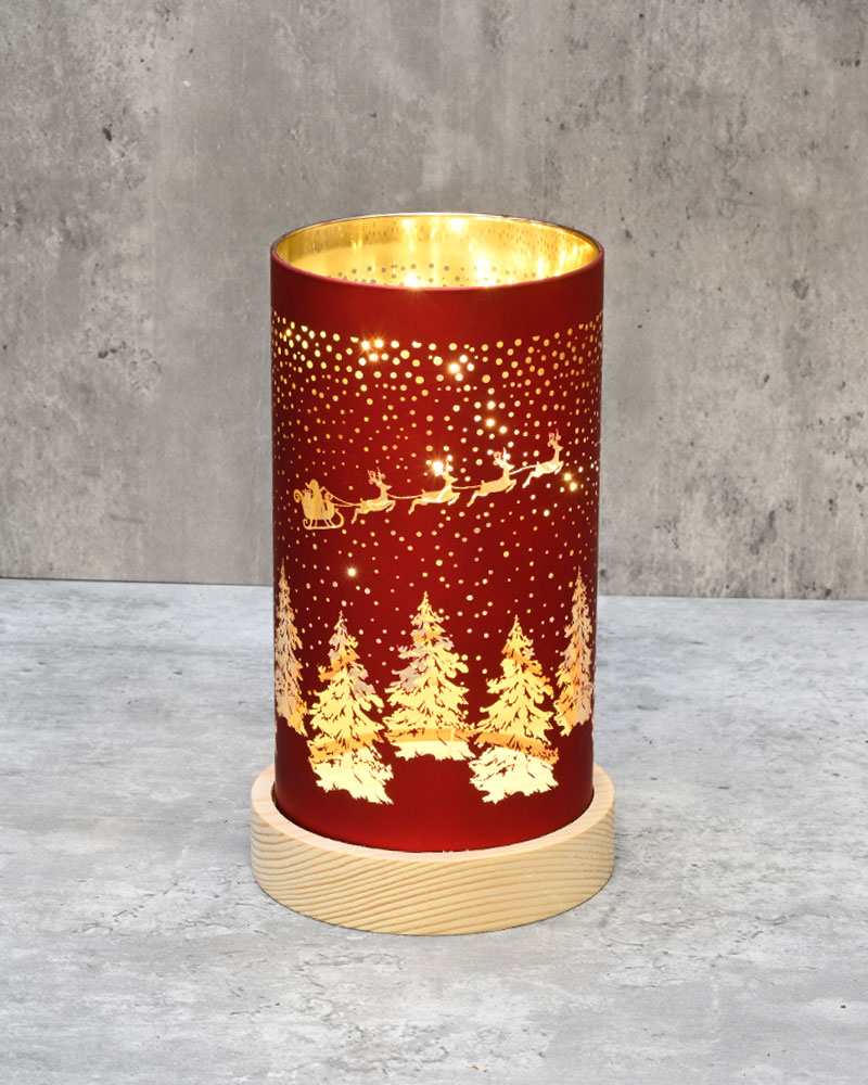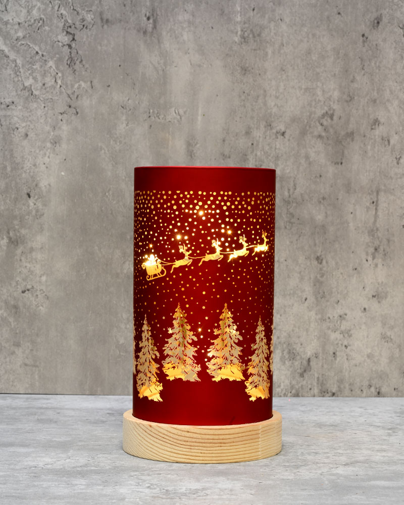 This modern lantern, featuring bright LED lights, is the perfect addition to any shelf or room seeking a cosy, festive touch. Bring a little bit of Santa magic into your home—by evening, enjoy the warm glow as you watch Santa soar through the night sky with his reindeer!