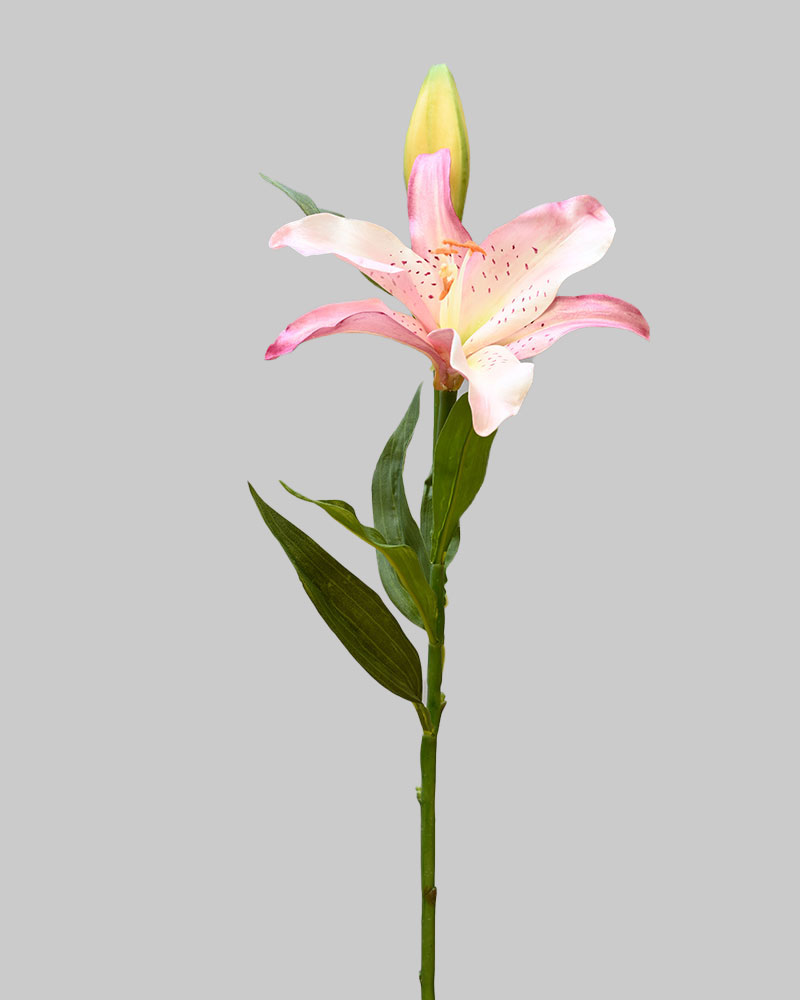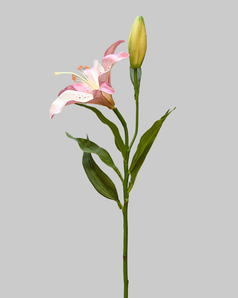 This lily makes a statement with its soft pink center fading into rich mauve edges. Perfect for adding a subtle touch of elegance or serving as a standout bloom in any arrangement.