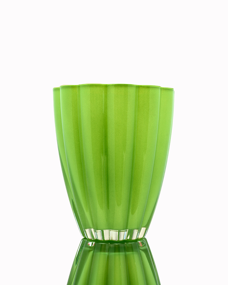This lime green glass vase brings a fresh pop of colour and playful elegance to any space. Featuring gently scalloped edges and a smooth, curved form, it’s perfect for showcasing floral arrangements or serving as a cheerful accent on its own. The vibrant hue and delicate detailing make it a standout piece that adds charm and personality to a variety of décor styles.