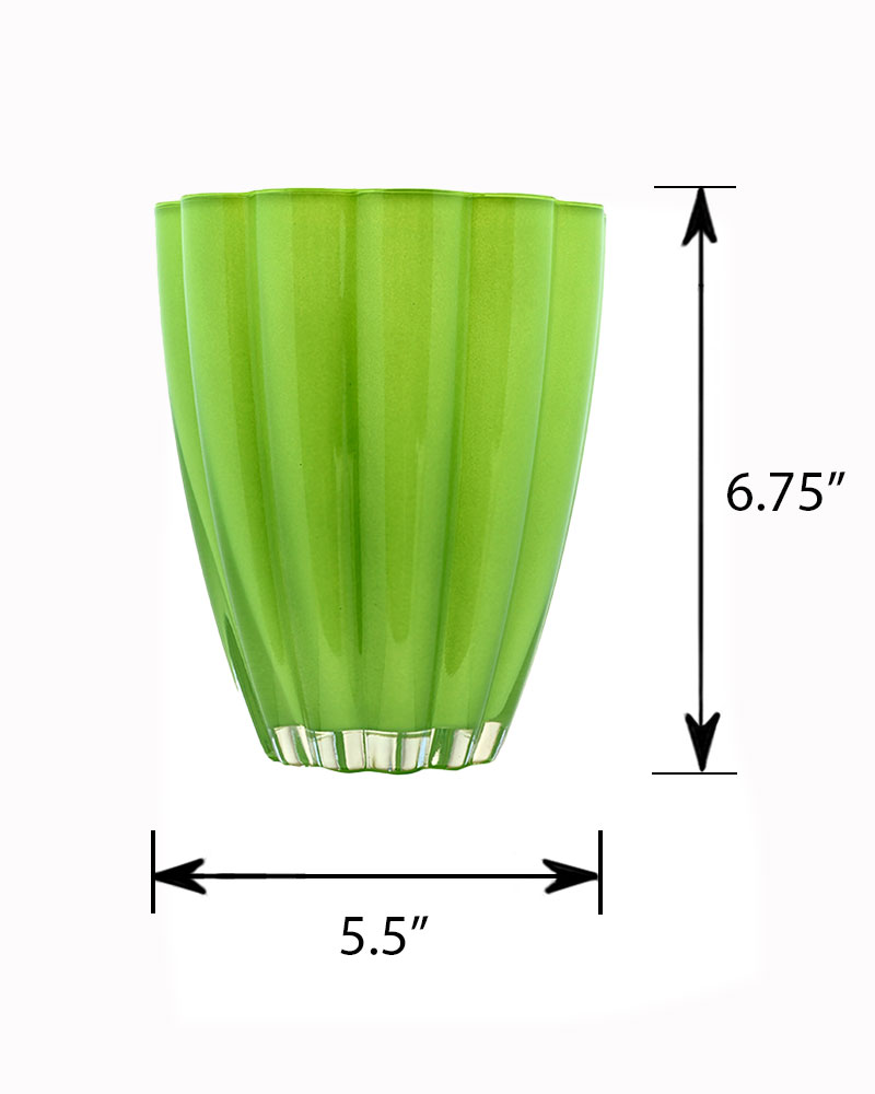 This lime green glass vase brings a fresh pop of colour and playful elegance to any space. Featuring gently scalloped edges and a smooth, curved form, it’s perfect for showcasing floral arrangements or serving as a cheerful accent on its own. The vibrant hue and delicate detailing make it a standout piece that adds charm and personality to a variety of décor styles.