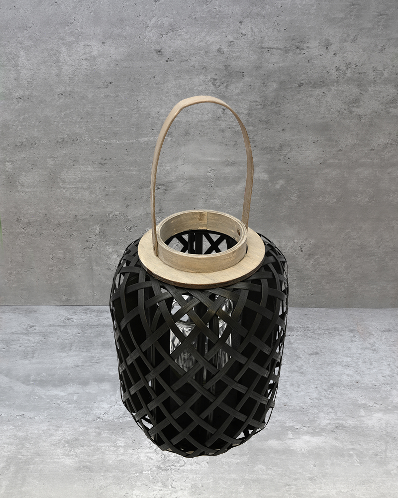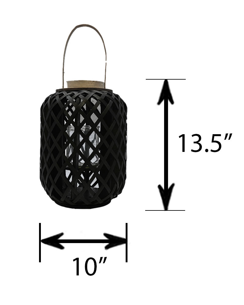With its black latticed design and cylindrical shape, this bamboo lantern adds a touch of natural elegance to any room in the home. Whether displayed on its own or incorporated into a custom floral arrangement, it’s a versatile accent that complements a variety of décor styles. Pair it with its larger counterpart for a more dramatic statement, or let it shine as a standalone piece—either way, it’s sure to impress.