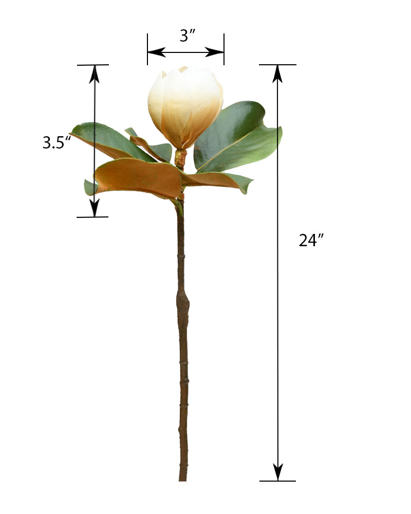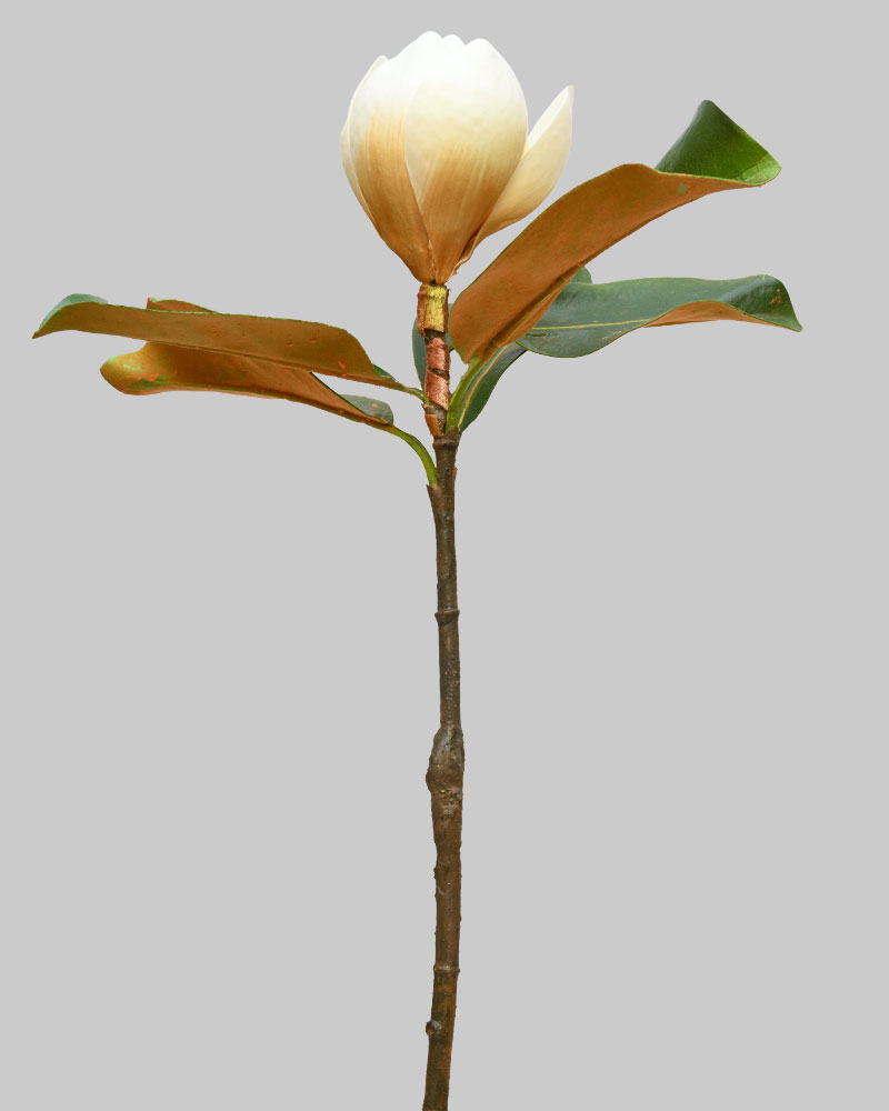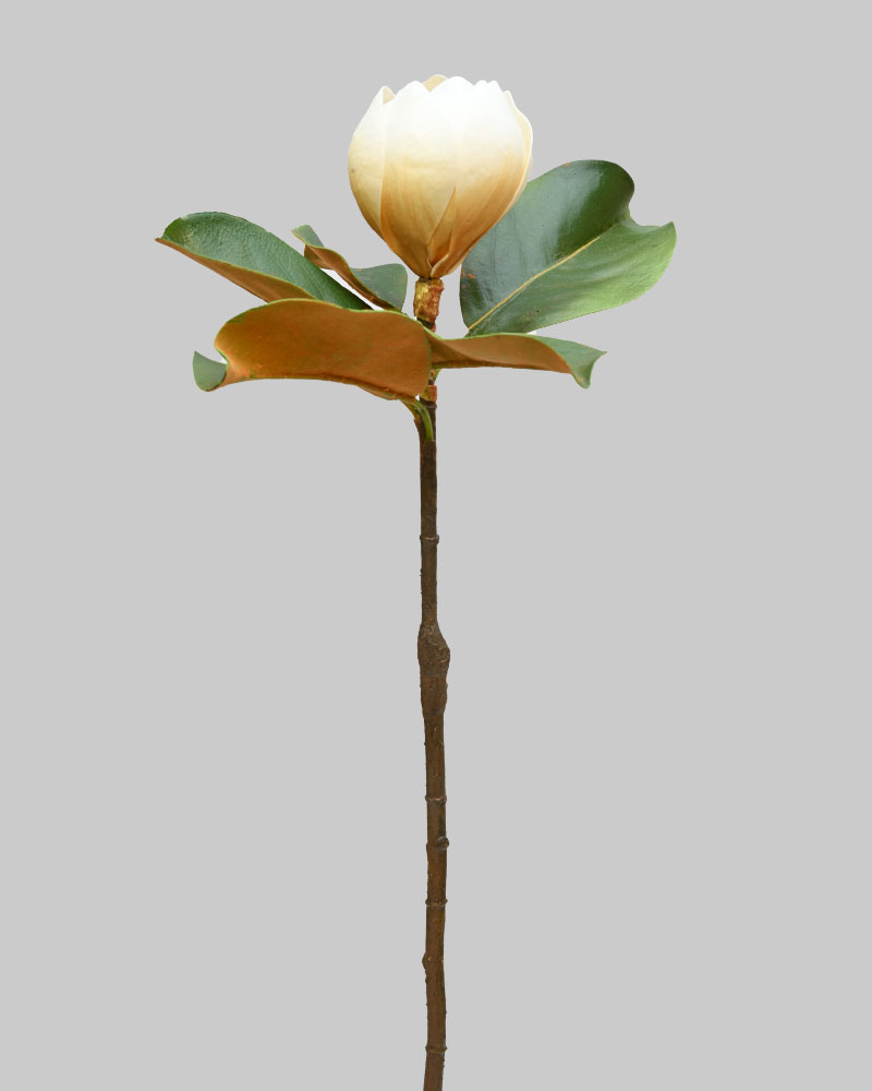 The magnolia tree is truly a wonder to behold. When in full bloom, its flowers are unmatched in beauty and grace—one of the most stunning flowering trees nature has to offer. While bringing an entire tree indoors may not be possible, you can still enjoy its charm with this elegant magnolia sprig. Featuring one perfect beige bloom nestled among deep green leaves, it adds a timeless and graceful touch to any arrangement.