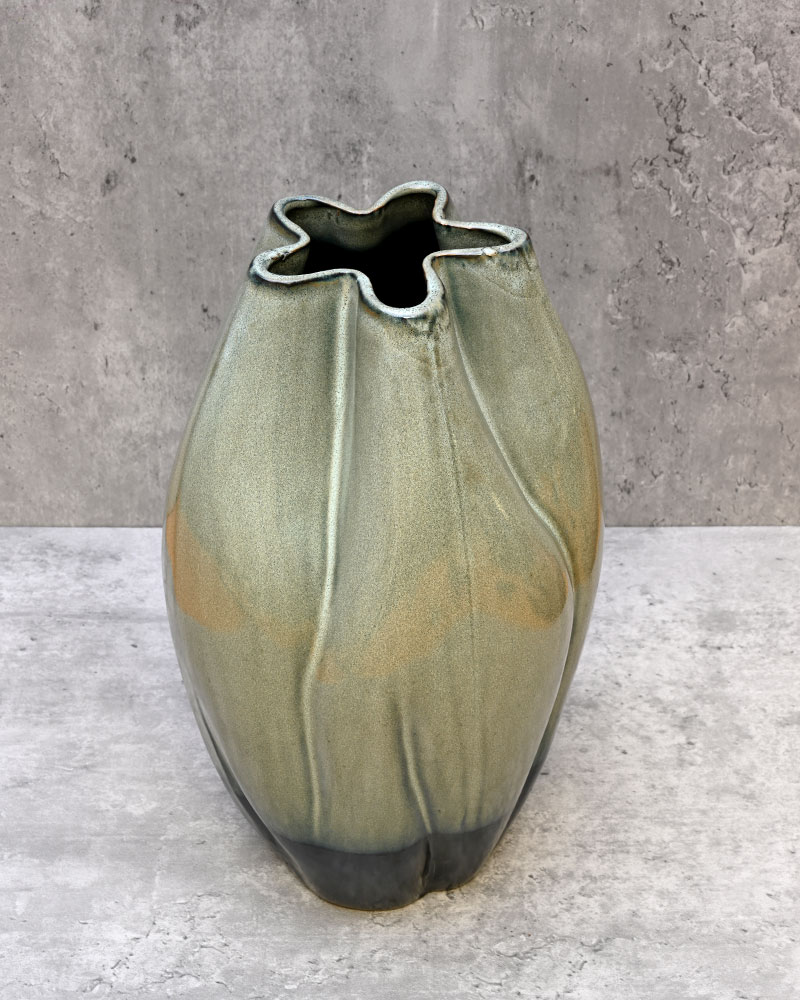 Featuring a striking two-tone green and blue finish, this vase combines vibrant colours with a unique, sculptural shape. Whether displayed solo or filled with your favourite blooms, it adds a refreshing pop of colour and artistic flair to any space. Its bold design makes it a true standout, perfect for enhancing modern and eclectic décor styles alike.