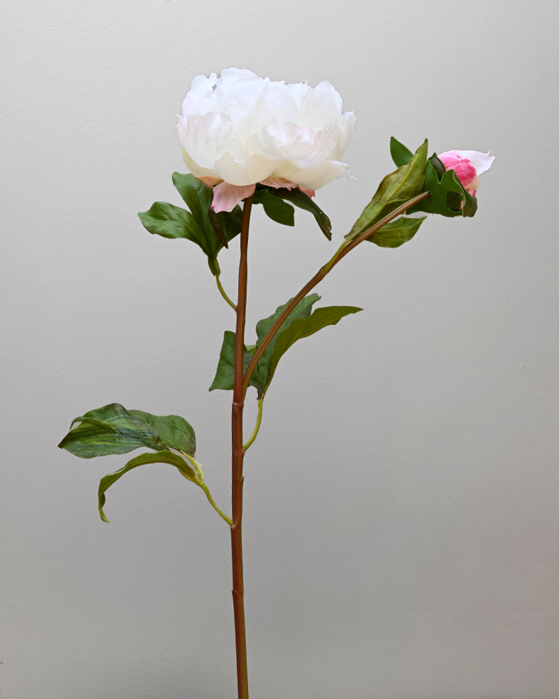 With one full flower and a gently opening bud, this Peony stem offers a perfect balance of elegance and purity. The bright white petals bring a fresh, clean look that enhances any arrangement with timeless grace. Cherished for their natural beauty, Peonies add a serene and sophisticated touch to any space. Add a few stems and brighten your home with their classic charm.