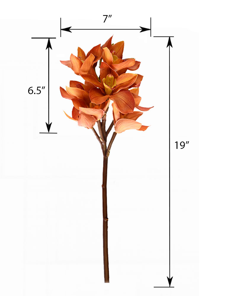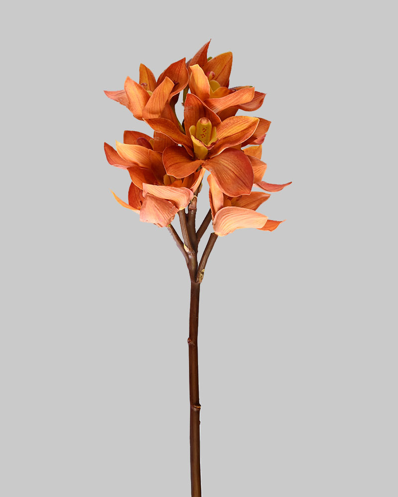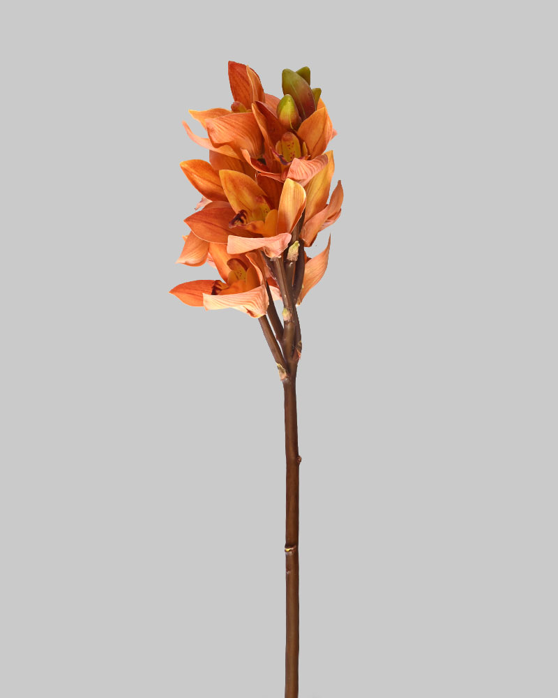 The Cymbidium Orchid is known for its striking beauty and luxurious appeal. This artificial stem features soft two-tone orange blooms, perfect for fall-inspired arrangements or adding a warm pop of colour. Whether used on its own or in a larger design, it brings the signature elegance Orchids are loved for.