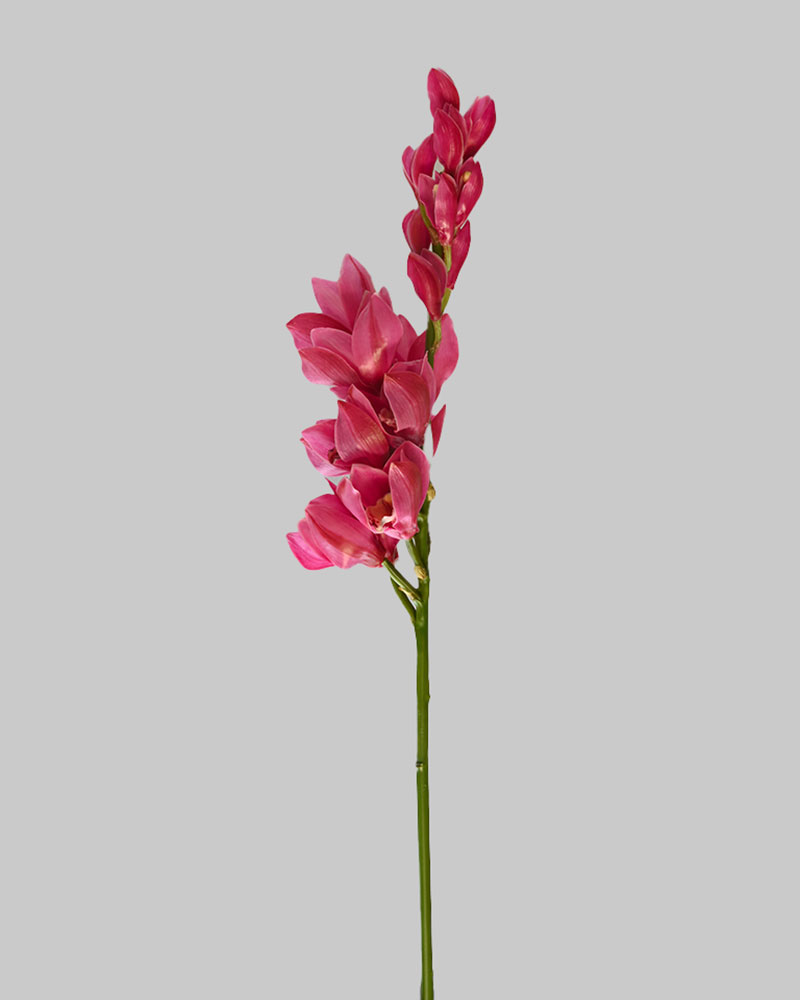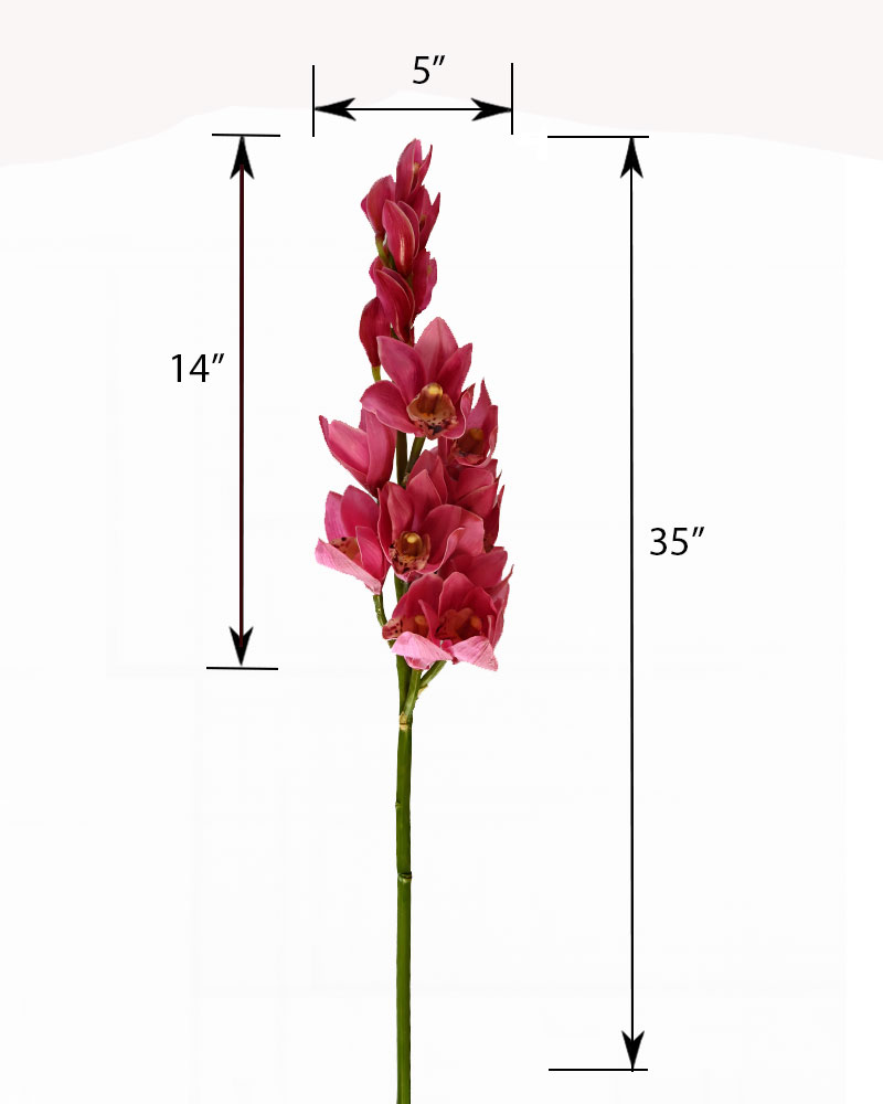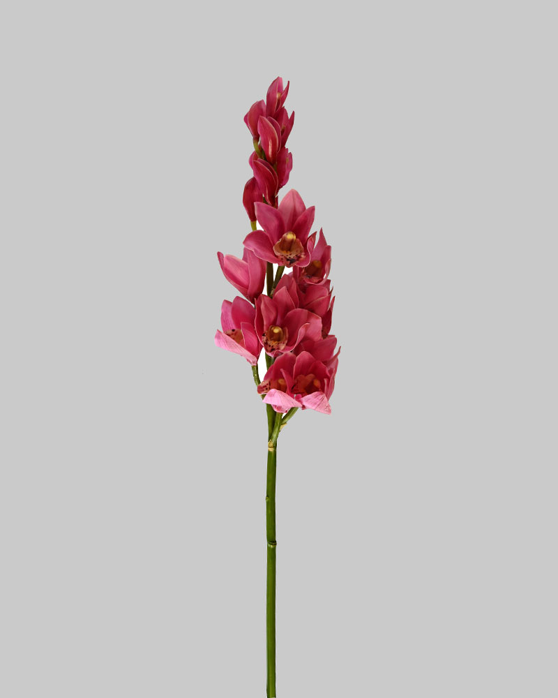 The Cymbidium Orchid is a stunning flower, known for its vibrant and intriguing blooms that add a luxurious touch to any room. This stem features beautiful two-tone pink flowers with a natural finish, making them look and feel remarkably lifelike. Perfect for enhancing any home arrangement with style and charm.