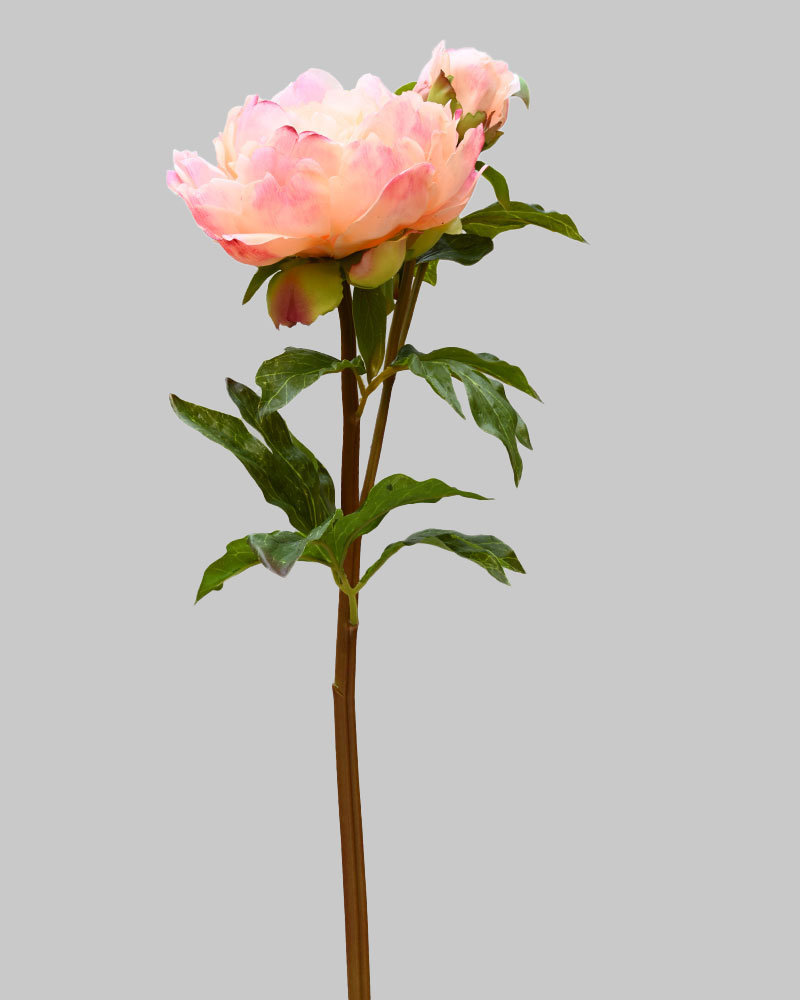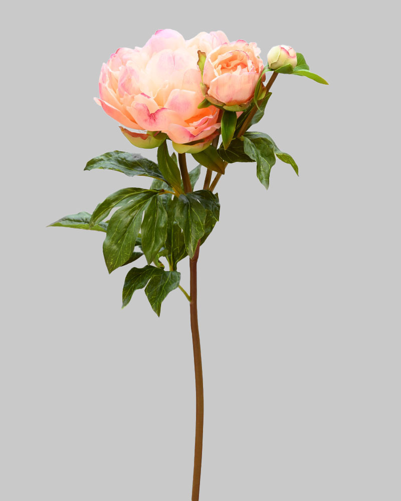 With one stunning main flower and two gently opening buds, this Peony combines colour and style perfectly. Crafted with incredible detail, it not only looks real but feels real too. The soft peach petals create a truly spectacular bloom. So lifelike, distinguishing it from real is nearly impossible. Once added to an arrangement, it brings the beauty of nature indoors.