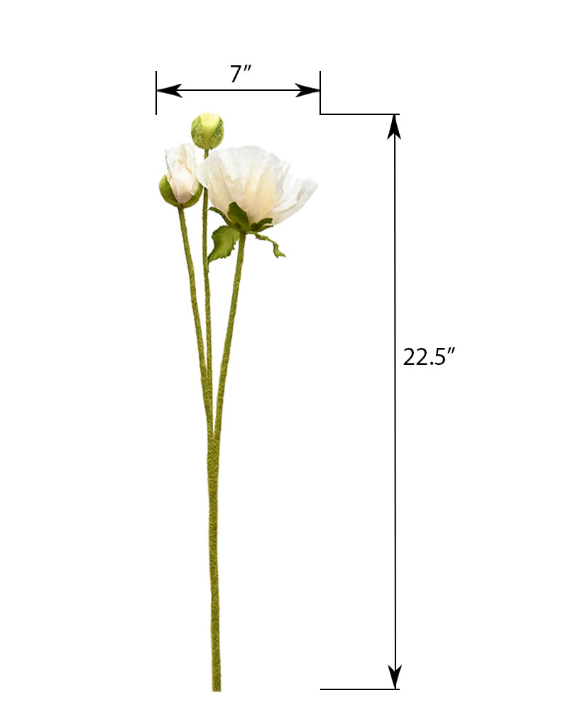 The poppy is a delicate, soft flower that adds a subtle and elegant touch to any arrangement. Its gentle beige petals paired with a slender, dainty stem create a look of understated beauty. Thoughtfully detailed, even the soft, slightly furry texture of the stem feels incredibly lifelike. A perfect choice for bringing a natural, refined feel to your space.
