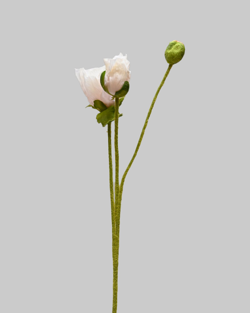 The poppy is a delicate, soft flower that adds a subtle and graceful touch to any arrangement. Its muted dusty peach petals bring a warm, vintage-inspired charm, perfectly paired with a slender, dainty stem. Crafted with incredible attention to detail—including a soft, slightly furry texture—the stem feels just as lifelike as it looks. A beautiful choice for adding natural elegance to any setting.