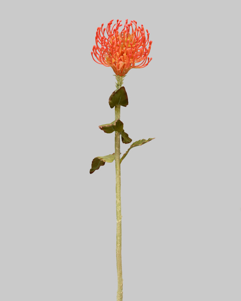 The Protea Pin Cushion is an even more unique and striking bloom than the classic Protea. With its exotic form, intricate structure, and vibrant range of colours, few flowers can compete. Lacking traditional petals, it’s as if nature worked overtime to create something truly out of this world. Featuring a bold, soft orange flower head, this Protea becomes an instant focal point—bringing that unmistakable wow factor to any arrangement. If you’re looking to add something truly distinctive to your home, few flowers rise to the occasion like the Protea Pin Cushion.