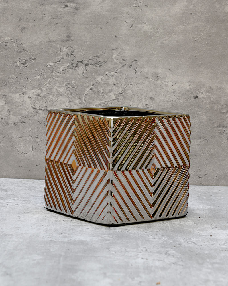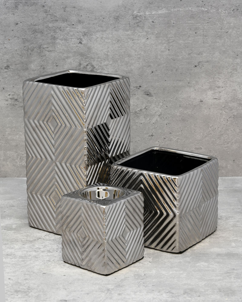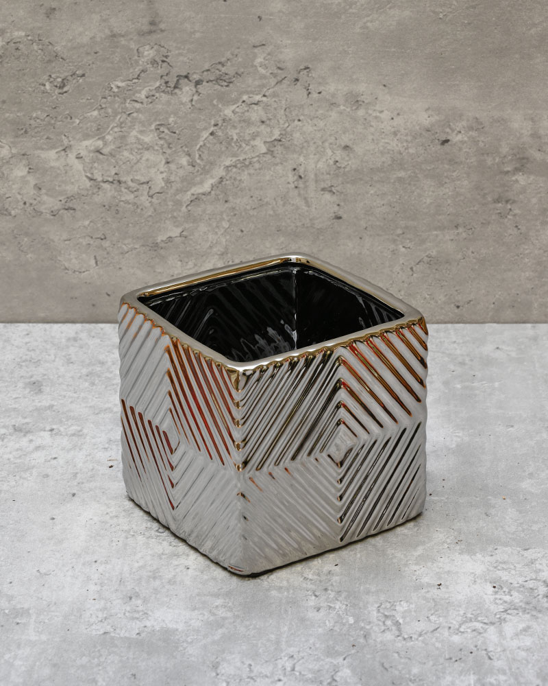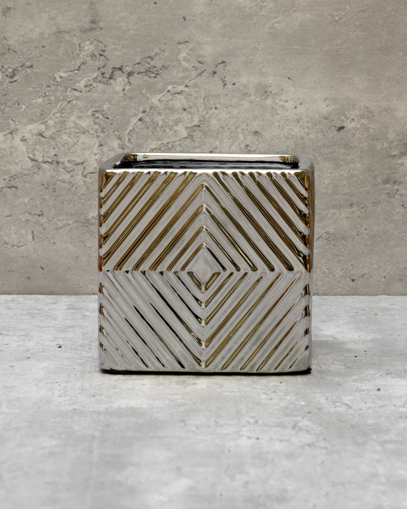Featuring a shiny linear pattern throughout, this container catches and reflects light in a way that creates dynamic visual interest. The textured finish adds depth and movement, making it more than just a functional piece. Pair it with the other available sizes for a striking, coordinated display that truly makes a statement in any space.