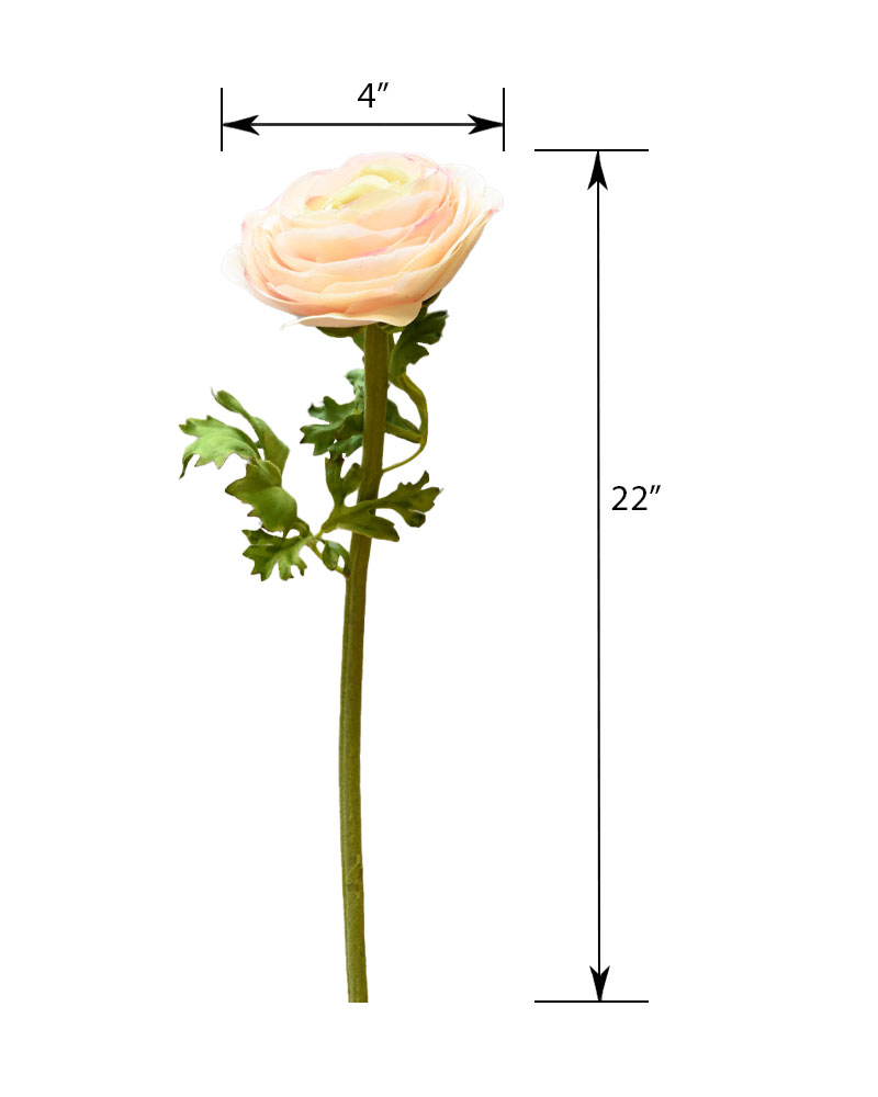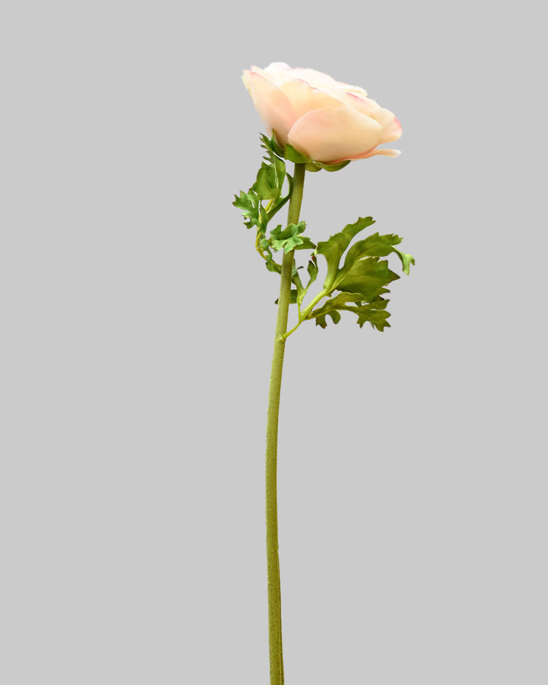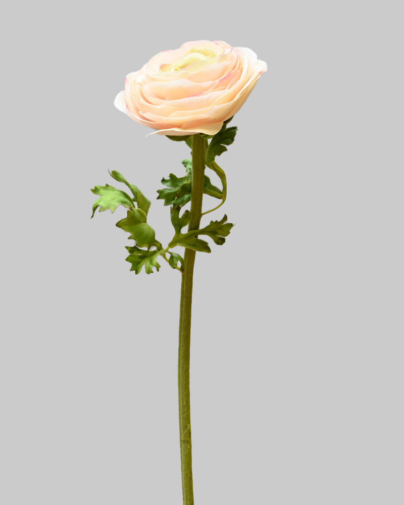 The Ranunculus is one of nature’s most stunning flowers. Layers of delicate petals create a bloom full of grace and texture. This stem features soft cream petals gently edged in pink, with a natural touch finish that makes it look and feel lifelike. Elegant and eye-catching, it’s the perfect standout piece for any arrangement.