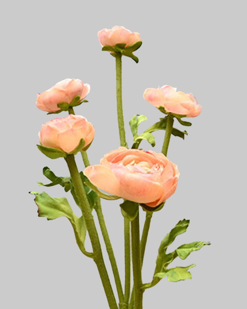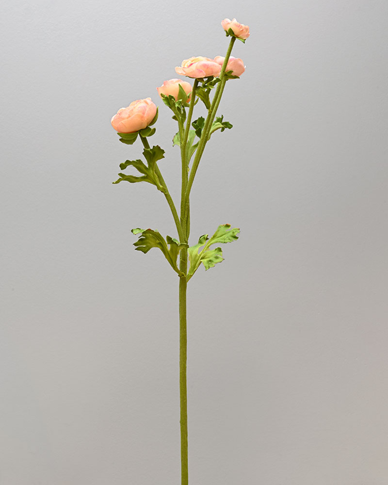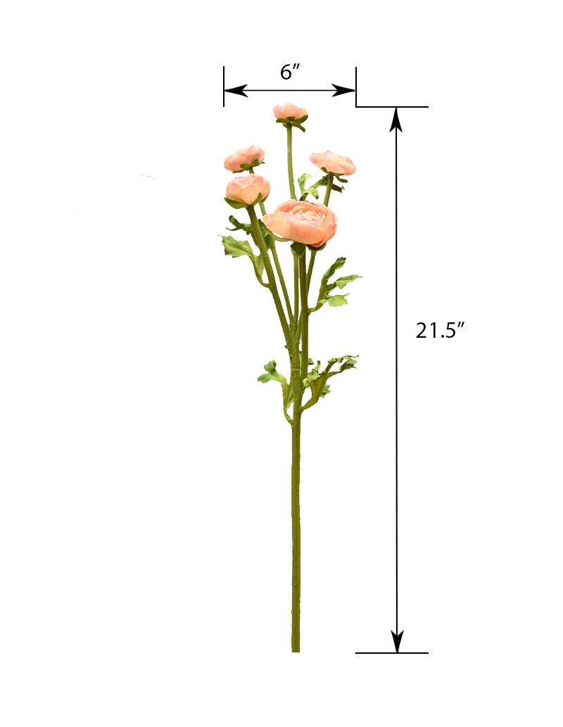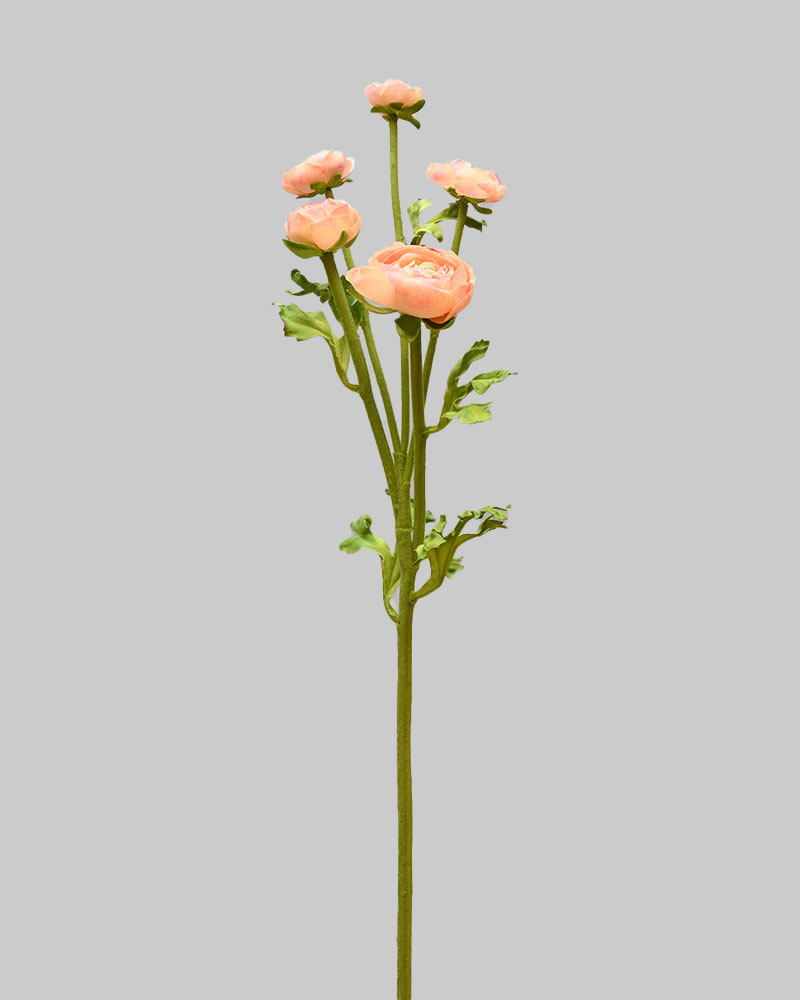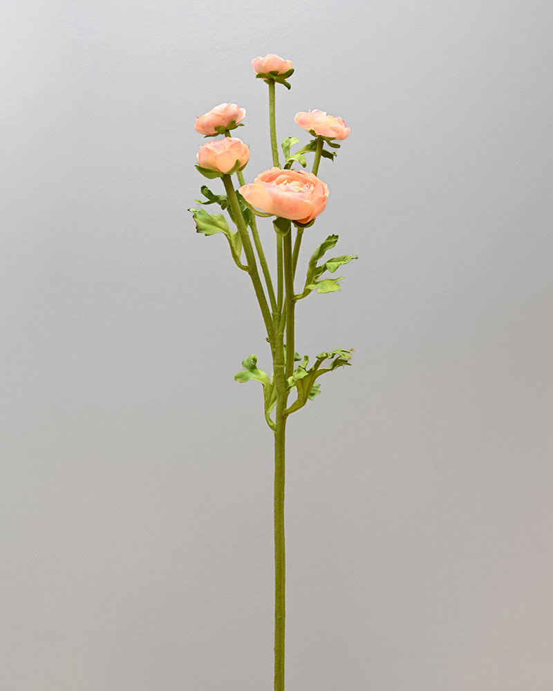 The Ranunculus is one of nature’s most stunning flowers. Layers of delicate petals come together to form a truly remarkable bloom. This stem features multiple small peach blooms with a natural touch, adding lifelike texture and warmth to any arrangement. It’s the perfect way to bring elegance and subtle beauty into your space.