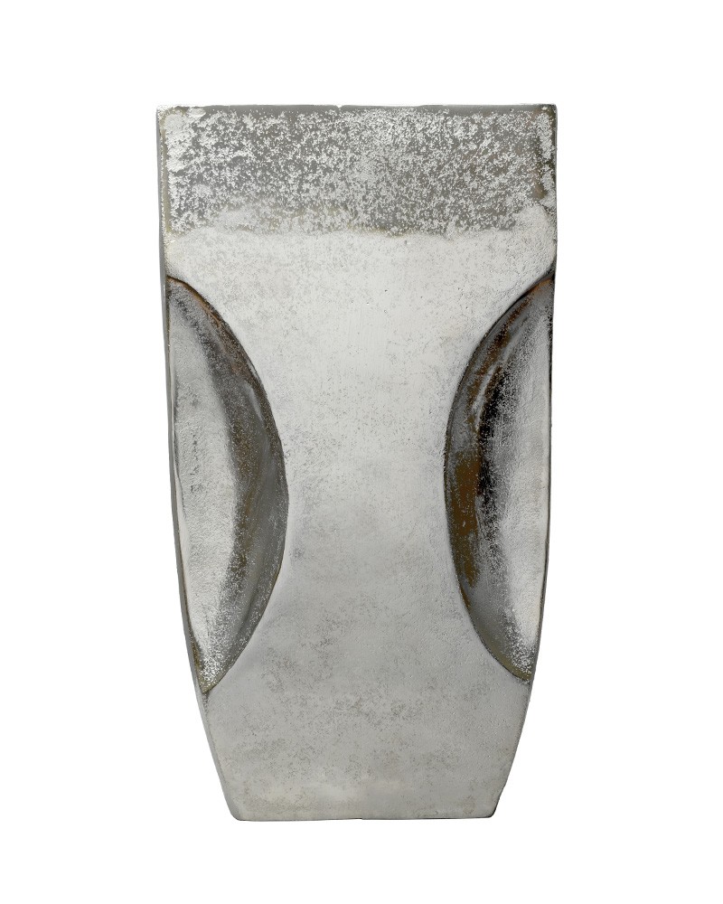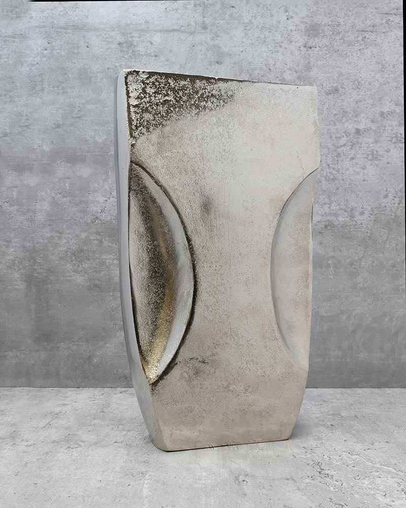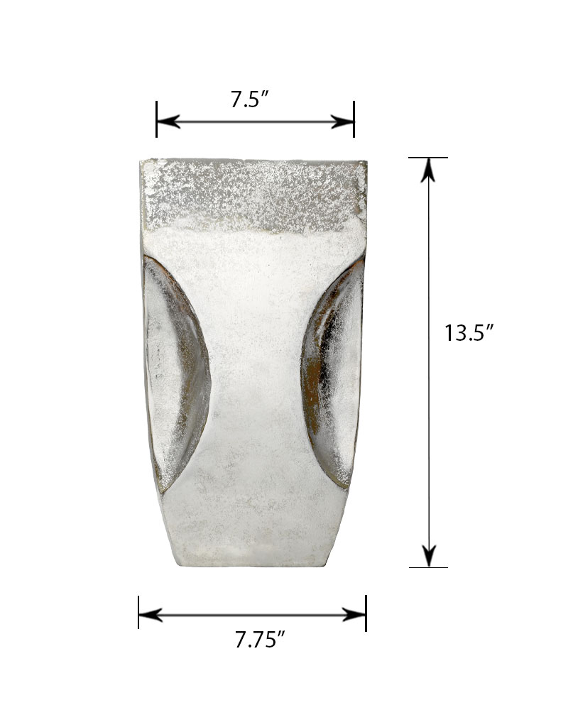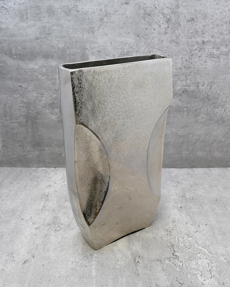 With its polished aluminum finish and subtly textured feel, this container brings a modern edge to any space. Each side features a distinct indentation, giving it a unique shape and standout style. Whether paired with similar containers, used in a floral arrangement, or displayed on its own, this piece is sure to impress with its sleek and contemporary design.