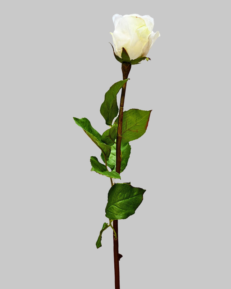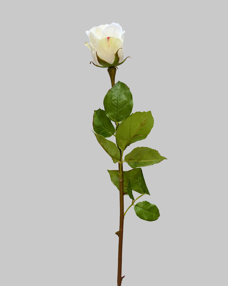 This Rose Dutchess Bud showcases soft white petals with gentle hues of yellow, creating a fresh and radiant look. The subtle colour blend adds a delicate warmth, making it a perfect, elegant addition to any arrangement.