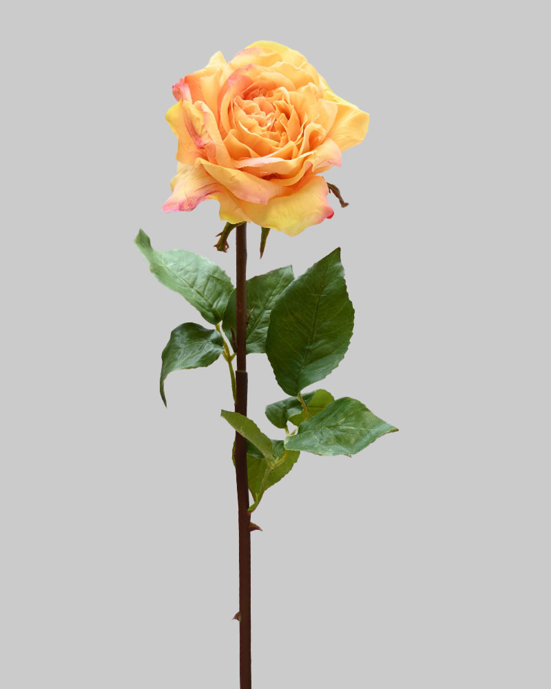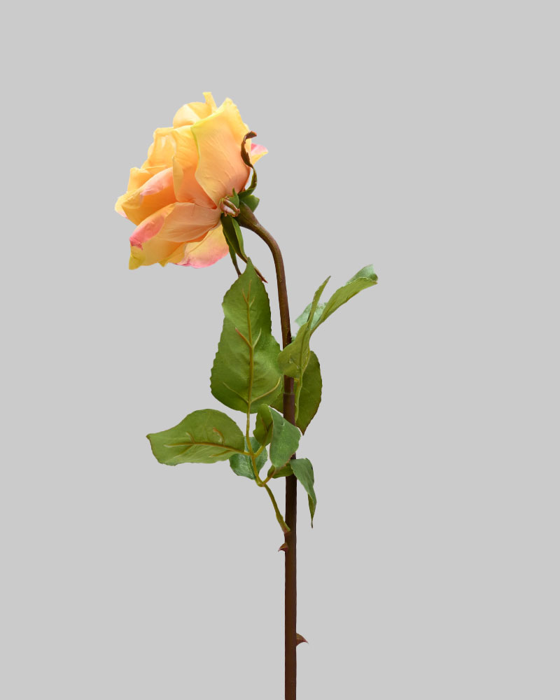 This Dutchess Rose is an absolute beauty! Its vibrant yellow petals, kissed with soft hints of pink, capture the delicate texture of real blooms. Lifelike details and gentle curves make this rose a stunning standout in any arrangement.
