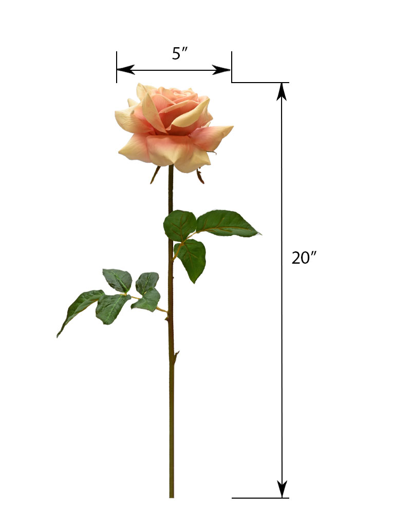 This Dutchess Rose is an absolute beauty! Its soft peach petals, gently shaded with subtle variations, are crafted with a natural touch that captures the delicate texture of real blooms. Lifelike details and graceful curves make this rose a stunning standout in any arrangement.