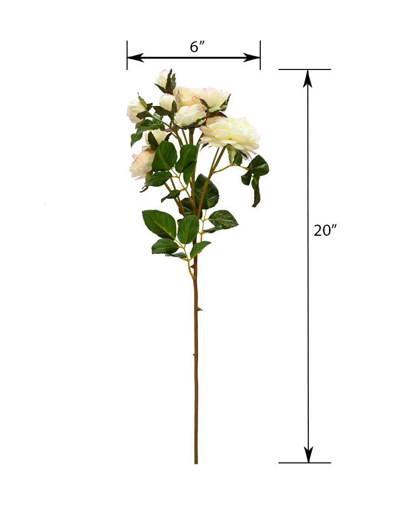 This English Rose Spray, in a warm cream hue brushed with soft pink edges, offers a lush and full-bodied accent to any arrangement. With abundant blooms and a naturally rounded shape, it brings graceful charm and a touch of garden romance to your floral designs.