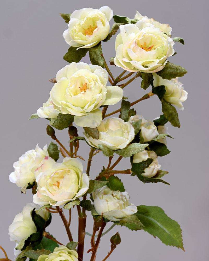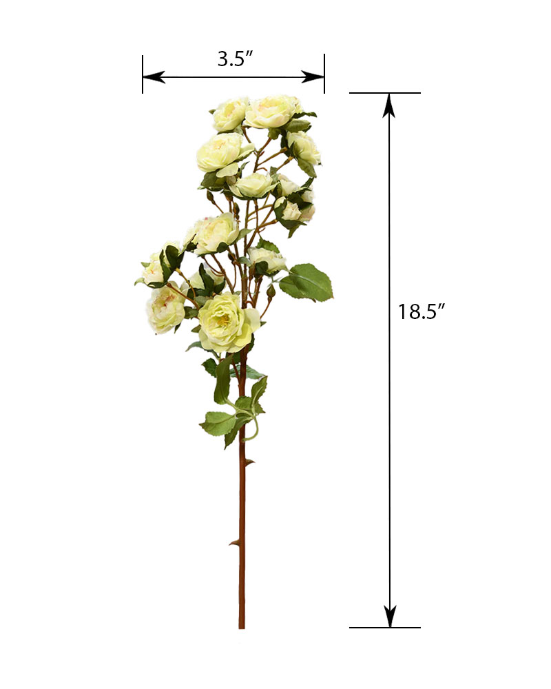 This Rose Mini Spray is bursting with delicate blooms and buds, coming together to create a beautiful display of colour and form. Thoughtfully crafted with attention to detail—including realistic thorny stems—it perfectly captures the charm of traditional garden roses.