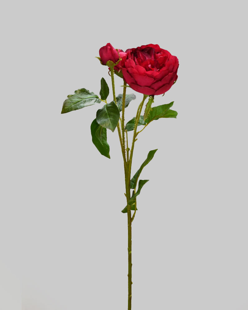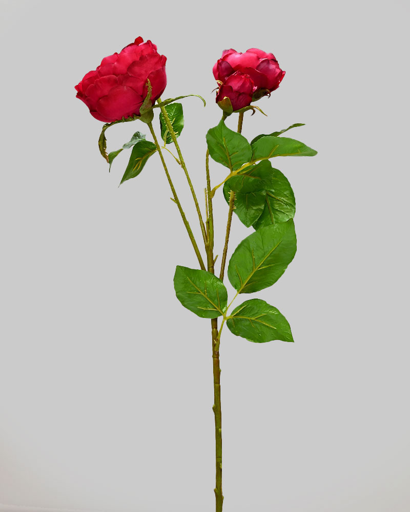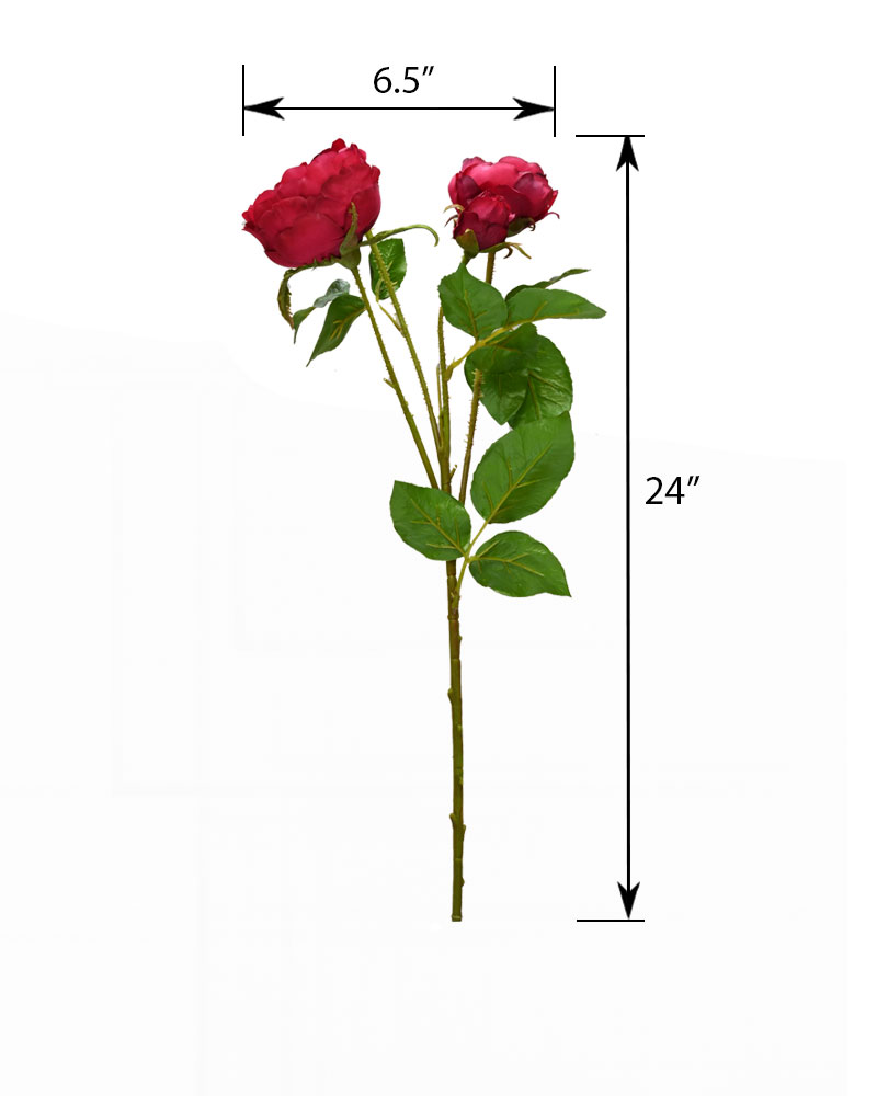 This rose spray, in a rich red colour, makes a lovely, full-bodied accent for any arrangement. The attention to detail—even including thorny stems—beautifully captures the traditional rose look.