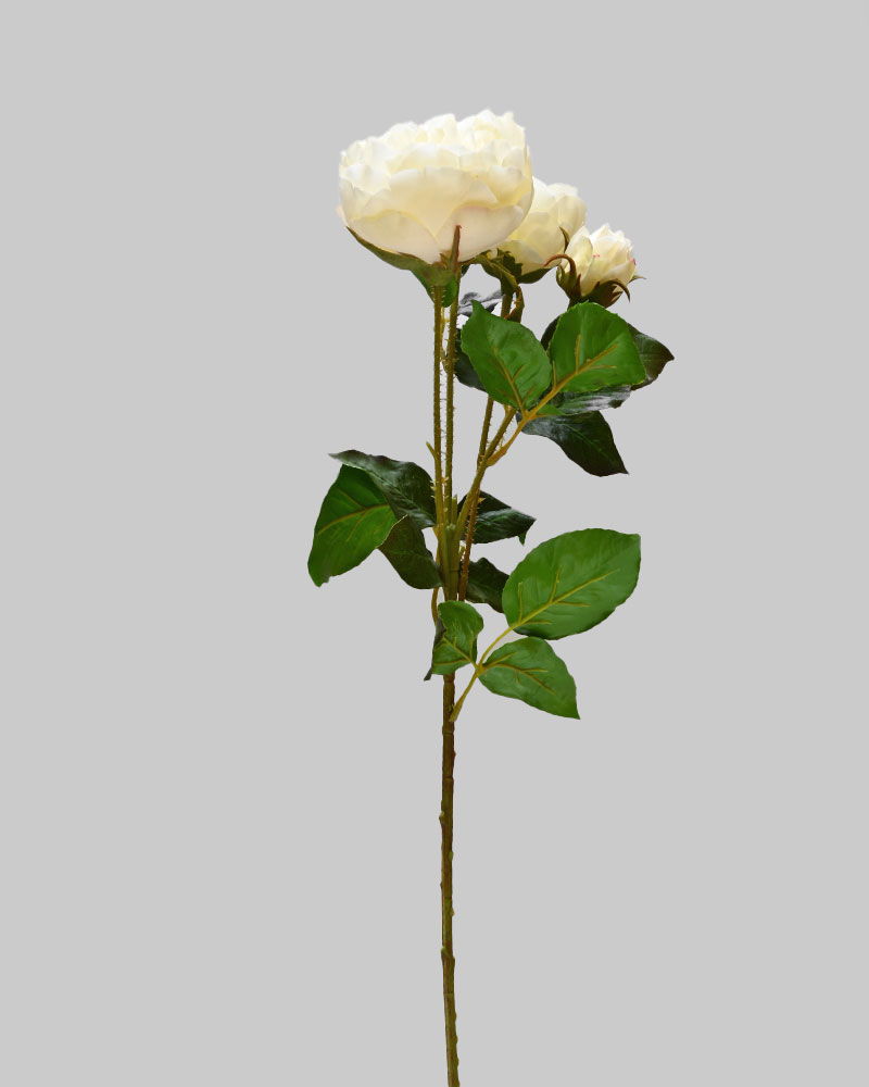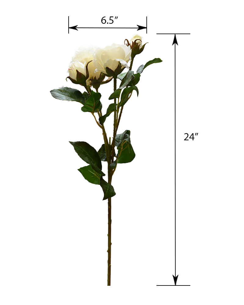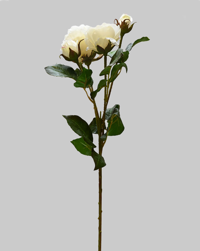 This rose spray, in a warm white colour, makes a lovely, full-bodied accent for any arrangement. The attention to detail—even including thorny stems—beautifully captures the traditional rose look.