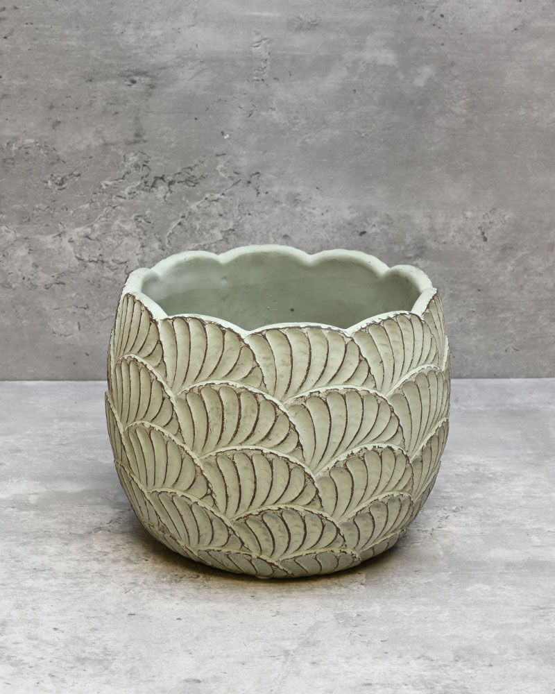 Circular in shape and green in colour, this charming container offers something a little different. Its unique, lettuce-like wrap finish adds a playful, organic touch—perfect for any kitchen-inspired arrangement or fresh, garden-themed display.
