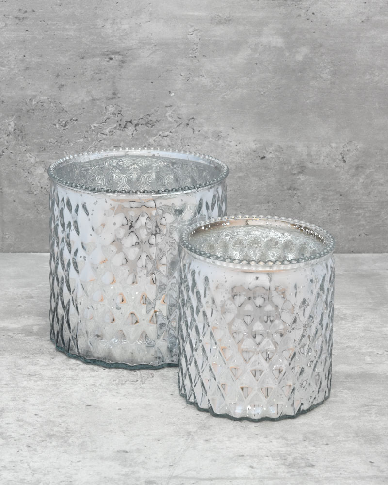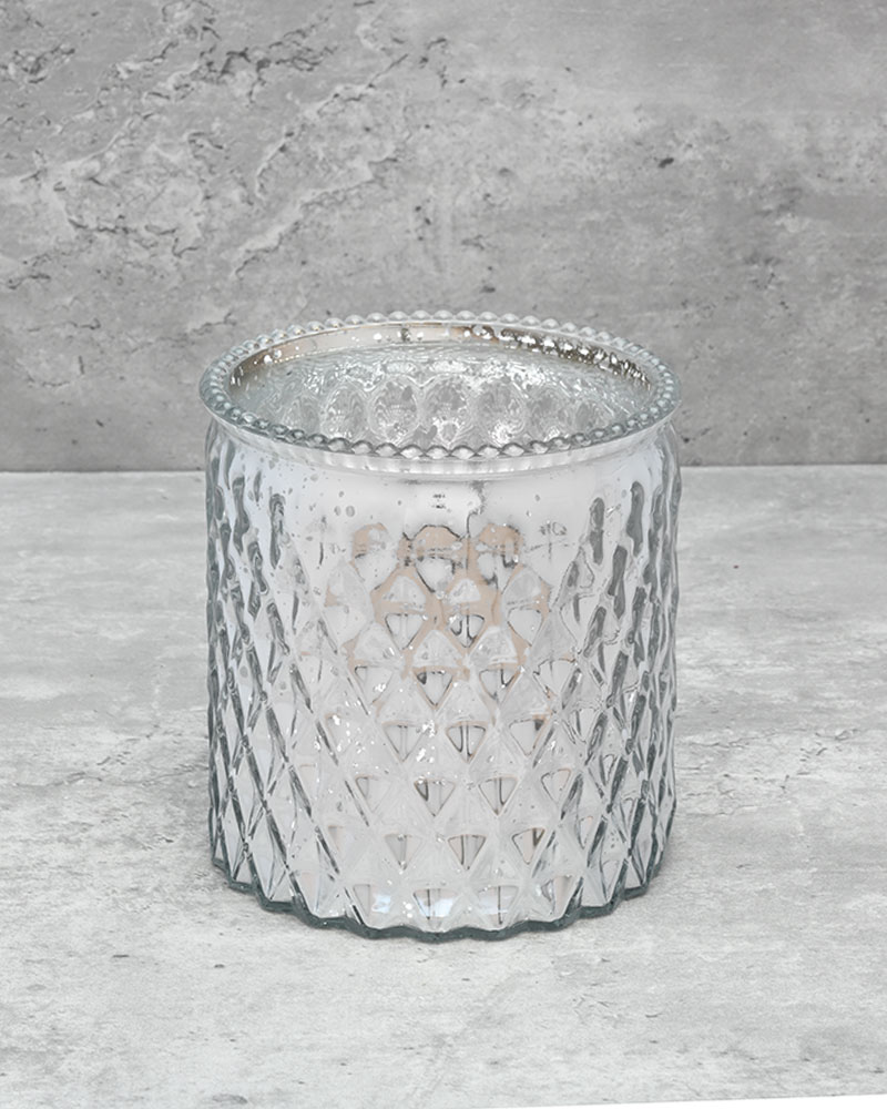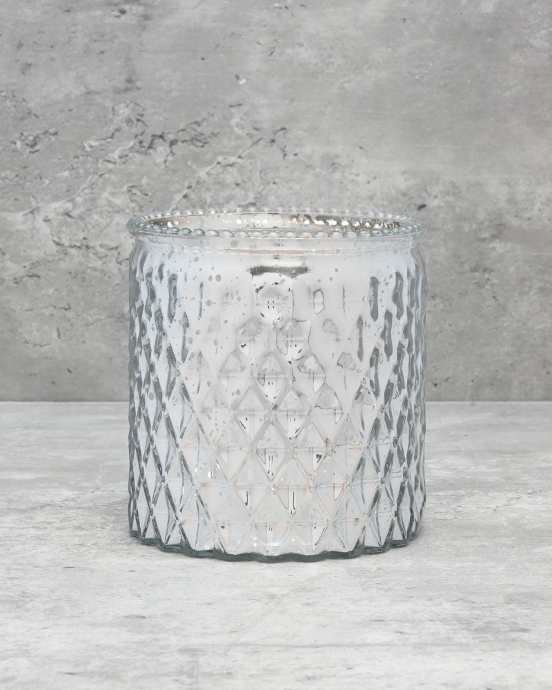An impressive glass vase with a beautifully dimpled silver exterior that catches the light from every angle. The shiny finish adds a luxurious touch, making it ideal for festive holiday arrangements or as a striking everyday showpiece. Its unique texture and reflective surface bring depth and sparkle to any floral display or décor setting, effortlessly enhancing the atmosphere with elegance and charm.