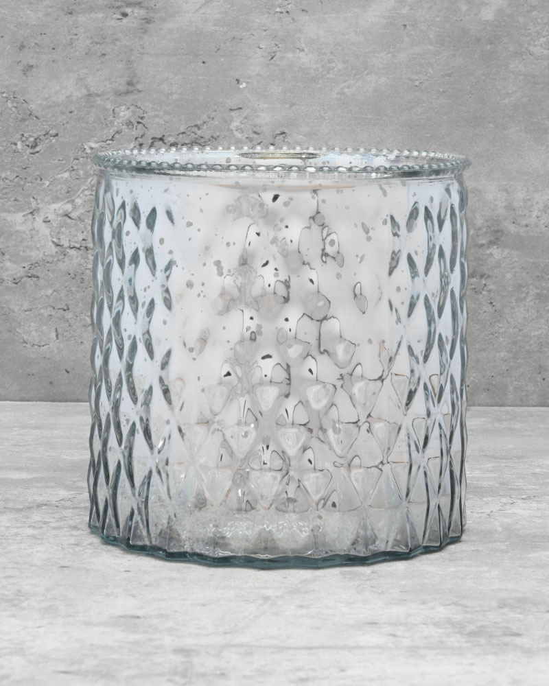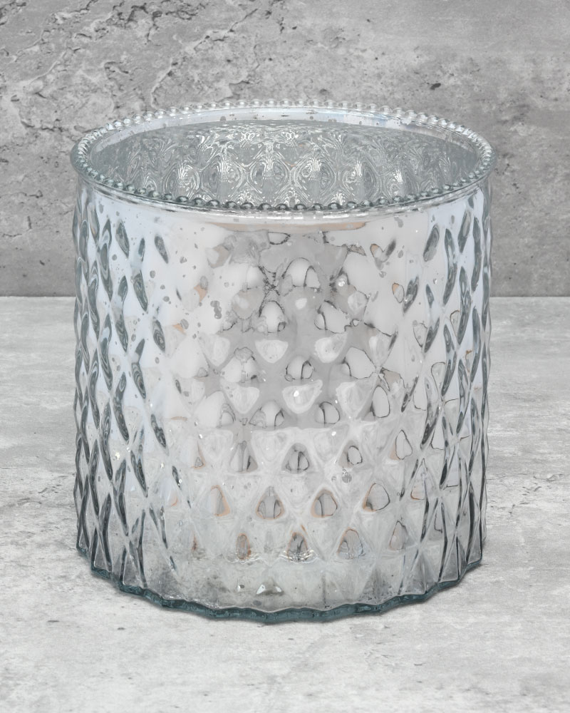 An impressive glass vase with a beautifully dimpled silver exterior that catches the light from every angle. The shiny finish adds a luxurious touch, making it ideal for festive holiday arrangements or as a striking everyday showpiece. Its unique texture and reflective surface bring depth and sparkle to any floral display or décor setting, effortlessly enhancing the atmosphere with elegance and charm.