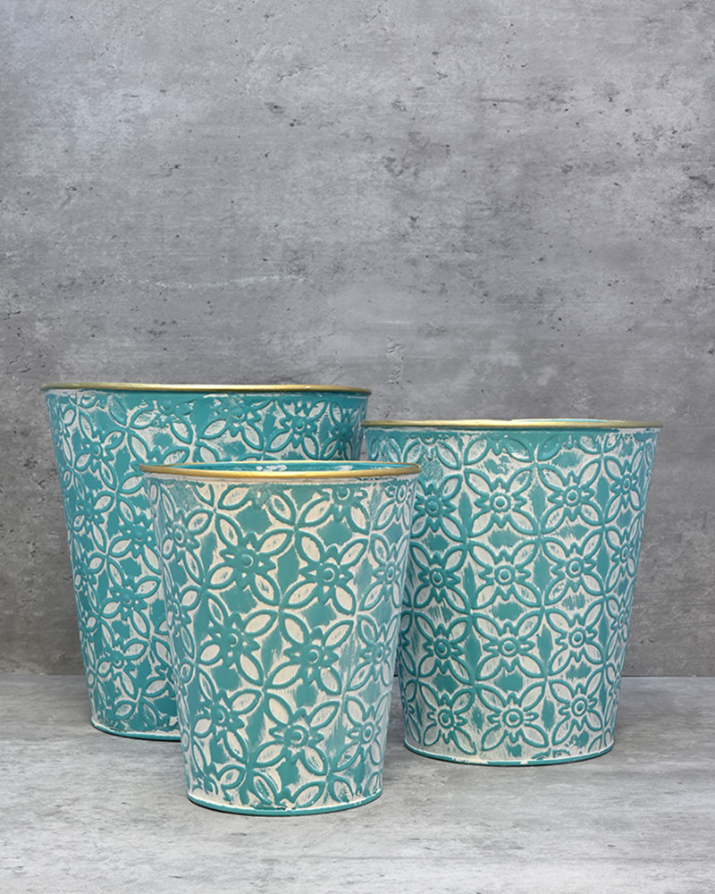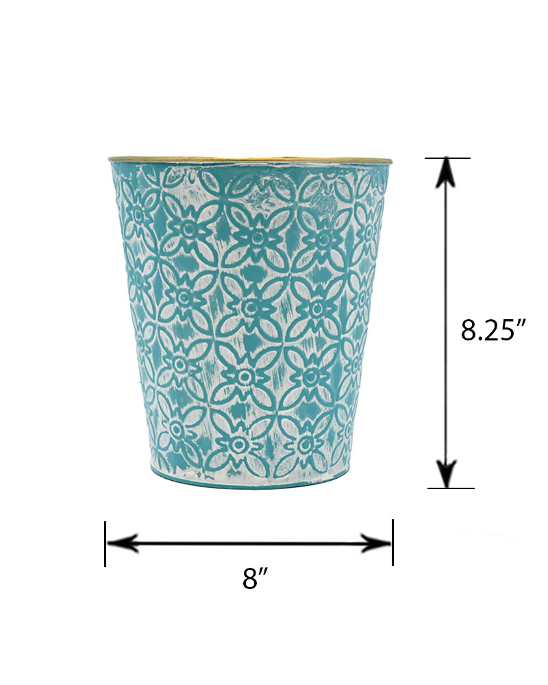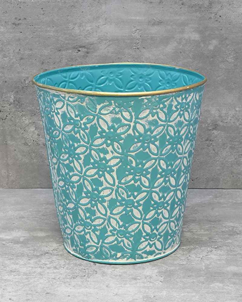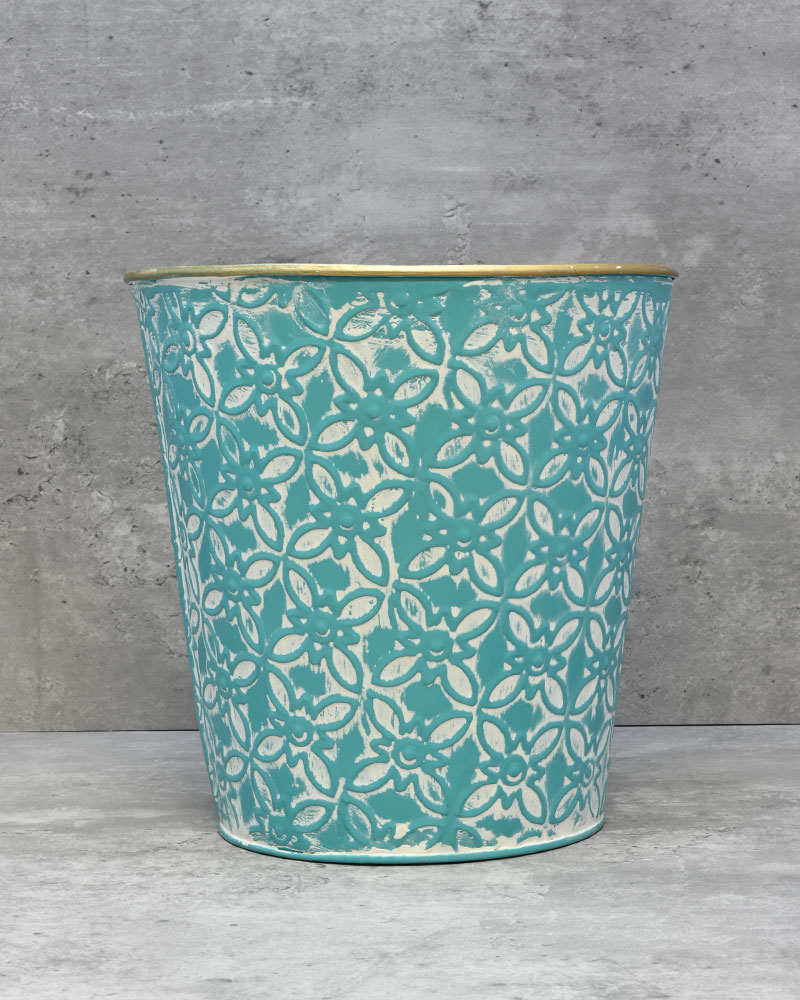 With a teal-coloured base and whitewashed finish, topped off with a gold rim, this container is the perfect choice for those looking to make a bold statement. Its rich tones and eye-catching details add a touch of elegance and drama to any floral arrangement. Whether used as a standout centrepiece or a stylish accent, this container is sure to draw attention and elevate your décor.