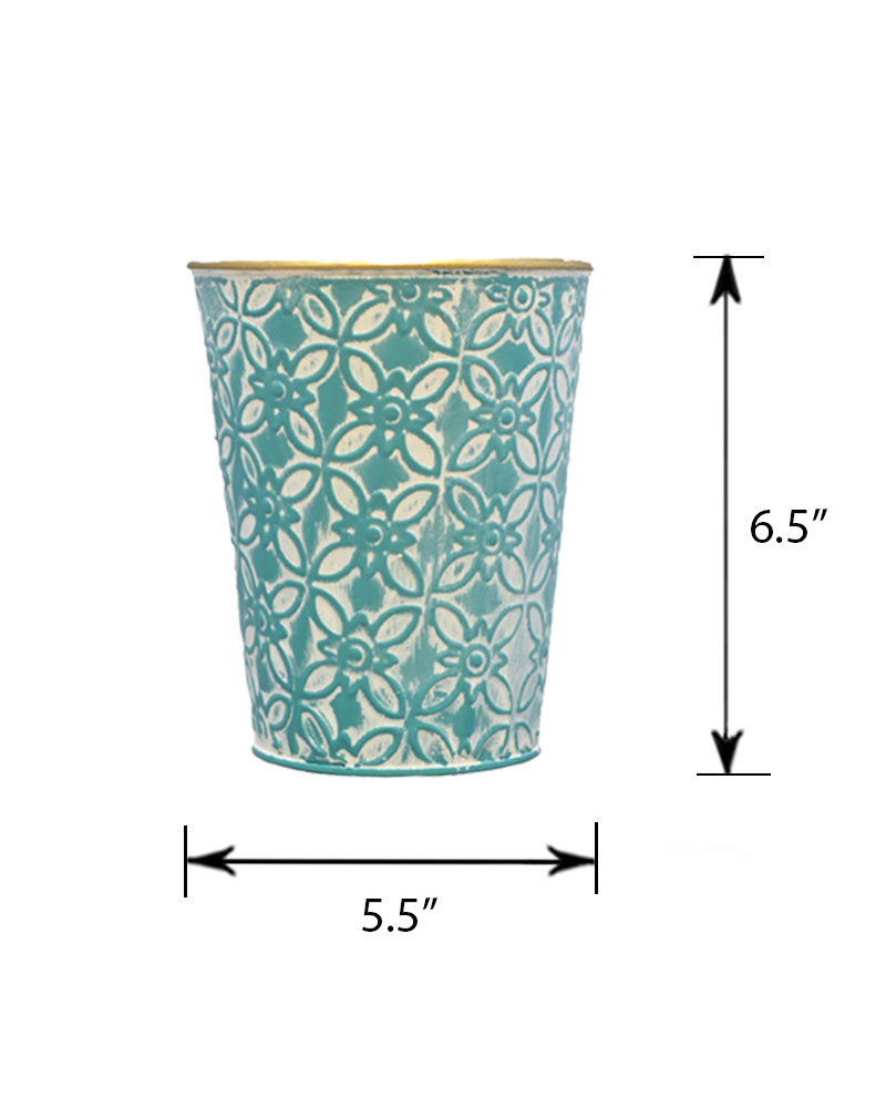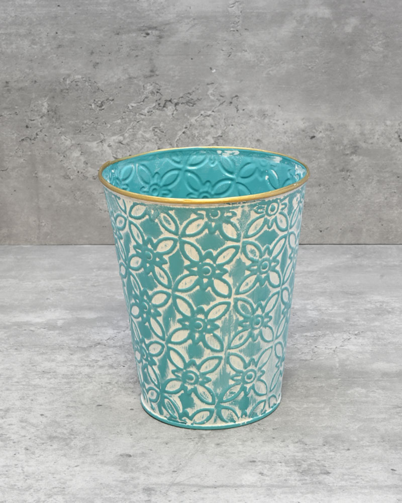 With a teal-coloured base and whitewashed finish, topped off with a gold rim, this container is the perfect choice for those looking to make a bold statement. Its rich tones and eye-catching details add a touch of elegance and drama to any floral arrangement. Whether used as a standout centrepiece or a stylish accent, this container is sure to draw attention and elevate your décor.