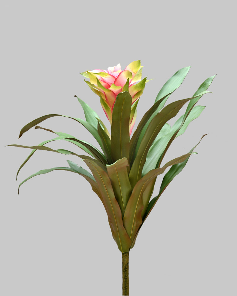 The Bromeliad is a unique tropical plant featuring an intriguing flower structure and texture. Its tough, slightly sharp leaves and blooms add a bold, tactile element to any arrangement. If you’re aiming for that tropical vibe, the Bromeliad won’t let you down. Perfect for adding intrigue, fullness, and character, this pink and green-toned Bromeliad brings an exotic splash of colour to your tropical designs.