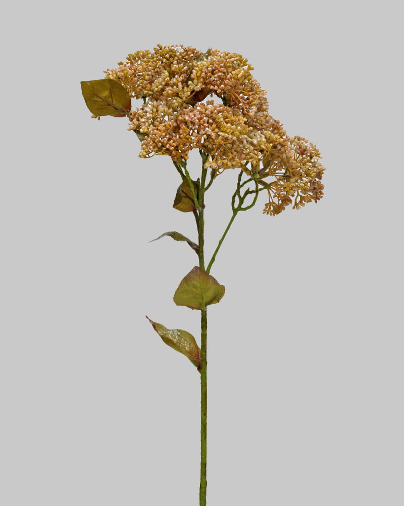 This golden sedum stem brings warmth and texture to any seasonal arrangement. Its clustered blooms in soft amber and honey tones create a natural, sunlit effect that pairs beautifully with autumn and winter décor. The lifelike leaves and branching design add depth and movement, making it ideal for centrepieces, wreaths, or mixed floral displays. Whether styled alone or combined with greenery and metallic accents, this stem adds a rich, golden glow to your festive or transitional arrangements.