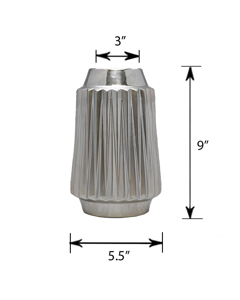 With its chrome-polished finish and finely etched linear texture, this container adds a sleek, modern edge that makes any arrangement stand out. The reflective surface and subtle detailing create visual interest from every angle.