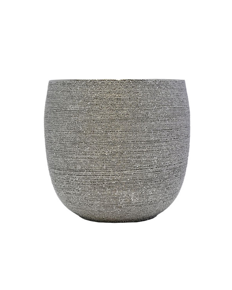 With a beaded silver texture on the outside and a smooth white glazed interior, this contemporary container adds a touch of elegance and contrast to any space. The subtle silver sparkle catches the light beautifully, making it a true standout piece for shelves, tabletops, or centrepieces.