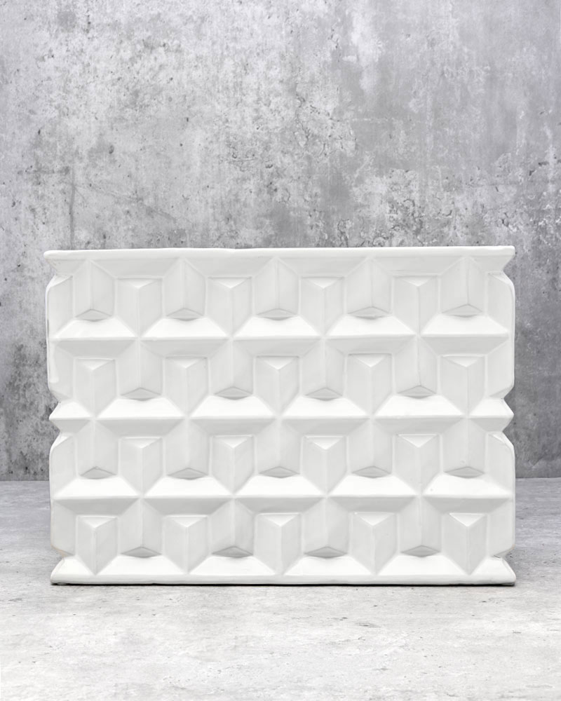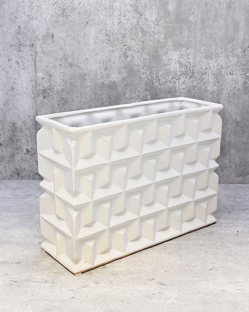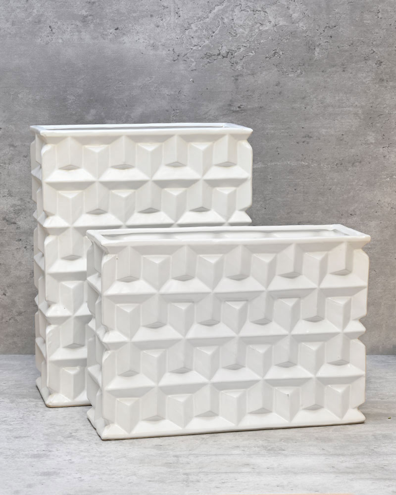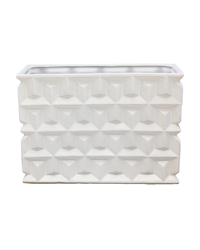 Featuring a richly textured finish that adds depth and visual interest, this container’s soft white colour provides a gentle, elegant backdrop. Together, they create a piece that enhances and highlights any arrangement, making it a beautiful focal point in any space.