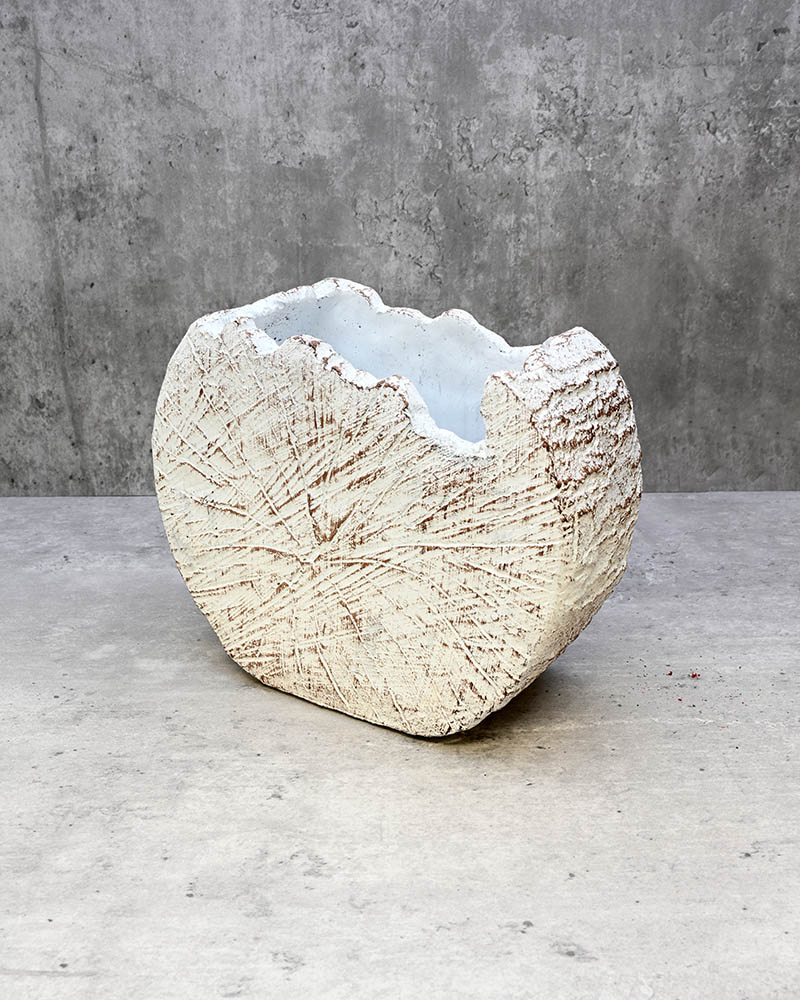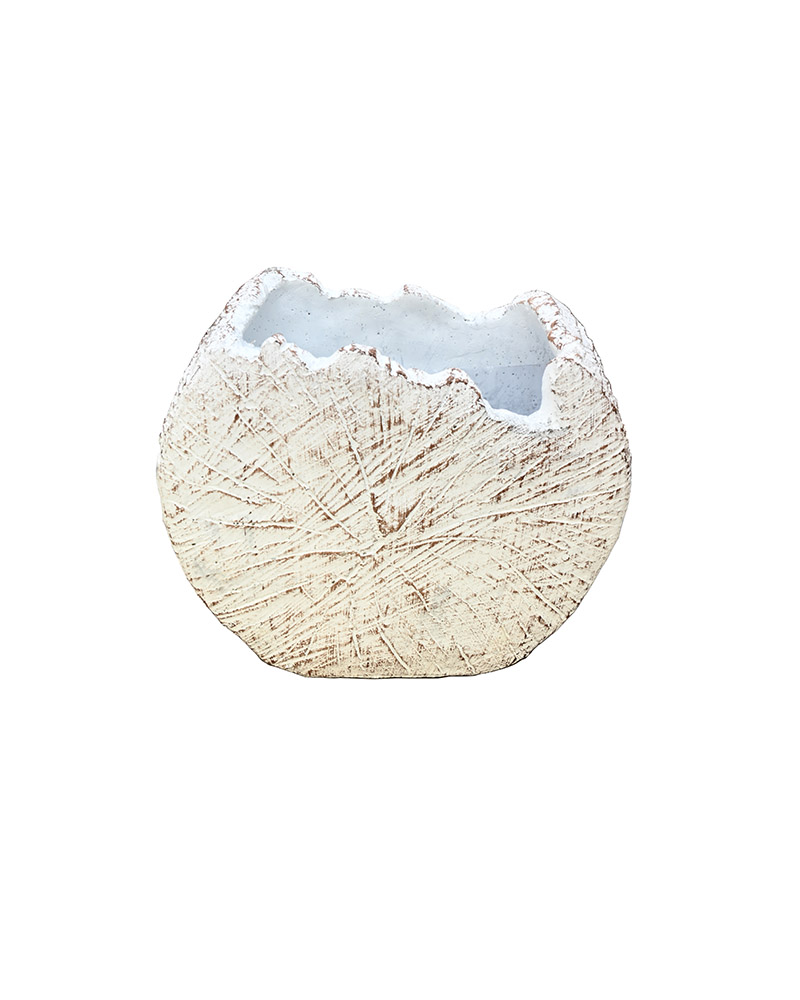 A unique and eye-catching container, this piece perfectly imitates a tree trunk with its crisp white tone and detailed outer bark finish — a true standout in any setting.