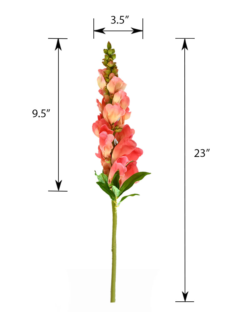 The snapdragon is a classic summer flower that brings height and vibrant colour to any garden. Now, you can bring that same natural beauty indoors with this perfectly crafted stem. Part of our Natural Touch series, this snapdragon is recreated with exceptional detail to look and feel just like the real thing. Featuring a warm salmon hue throughout, it adds a cheerful yet refined touch to any arrangement with lifelike charm.