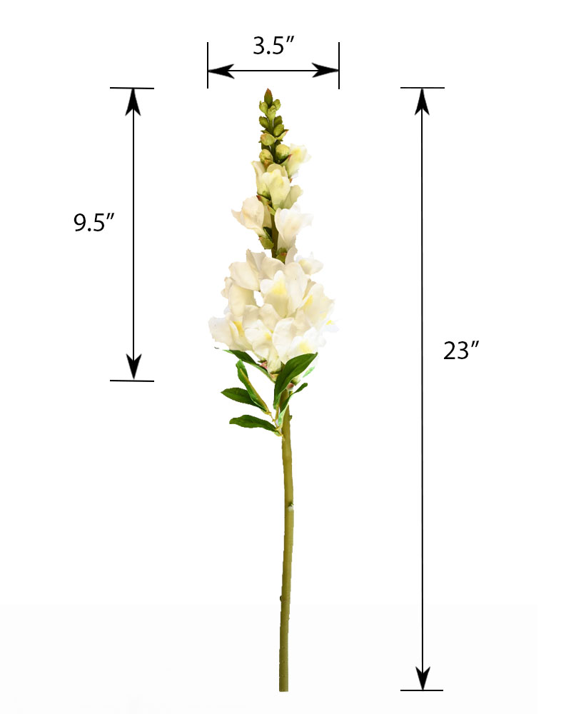 The snapdragon is a classic summer flower that brings height and vibrant colour to any garden. Now, you can bring that same natural beauty indoors with this perfectly crafted stem. Part of our Natural Touch series, this snapdragon is recreated with exceptional detail to look and feel just like the real thing. Featuring a crisp white colour throughout, it’s the perfect addition to elevate any arrangement with a touch of timeless elegance.