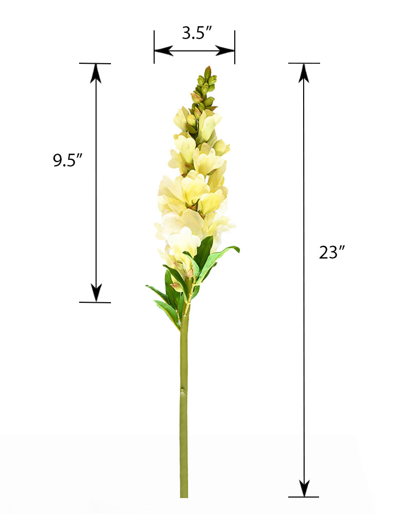 The snapdragon is a classic summer flower that brings height and vibrant colour to any garden. Now, you can bring that same natural beauty indoors with this perfectly crafted stem. Part of our Natural Touch series, this snapdragon is recreated with exceptional detail to look and feel just like the real thing. Featuring a soft yellow-white hue throughout, it adds a gentle, refined touch to any arrangement with lifelike charm.