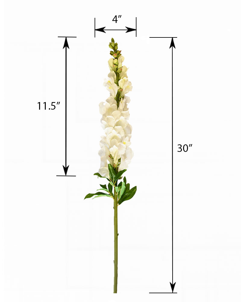 The snapdragon is a classic summer flower that adds height and vibrant colour to any garden. Bring a touch of the outdoors inside with this perfectly crafted snapdragon. Nature has been recreated with exceptional detail. As part of our Natural Touch series, these snapdragons look and feel just like the real thing. Featuring soft white hues throughout, this stem makes the perfect addition to any arrangement.
