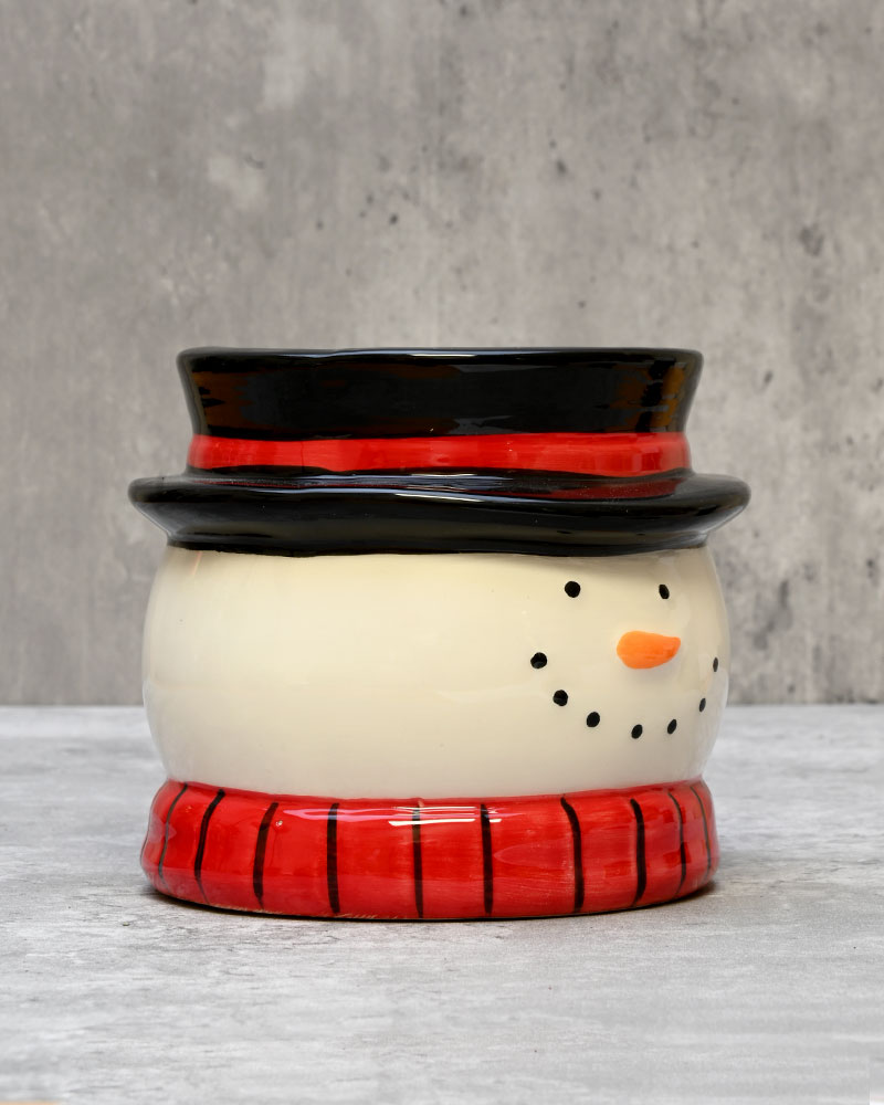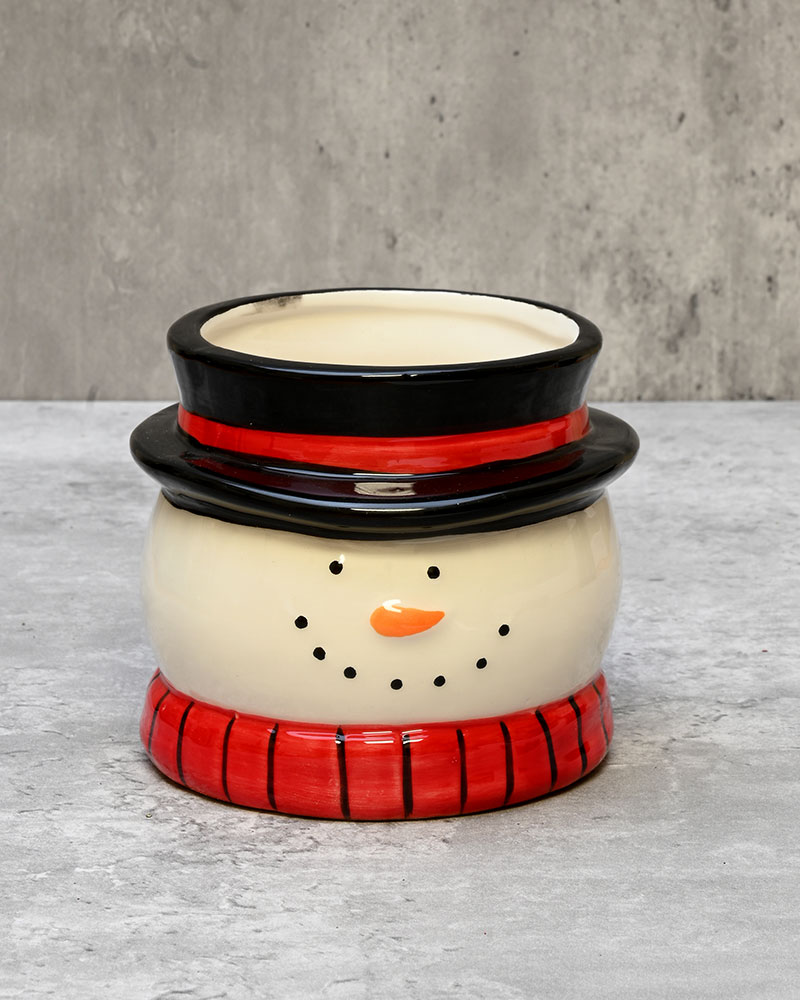 The perfect snowman container for that classic Christmas or winter look! With its cheerful expression and whimsical charm, this snowman adds a touch of seasonal magic to any space. Whether used as part of a festive floral arrangement, filled with greenery, or simply displayed on its own, it's a delightful accent that fits beautifully into any room all winter long.