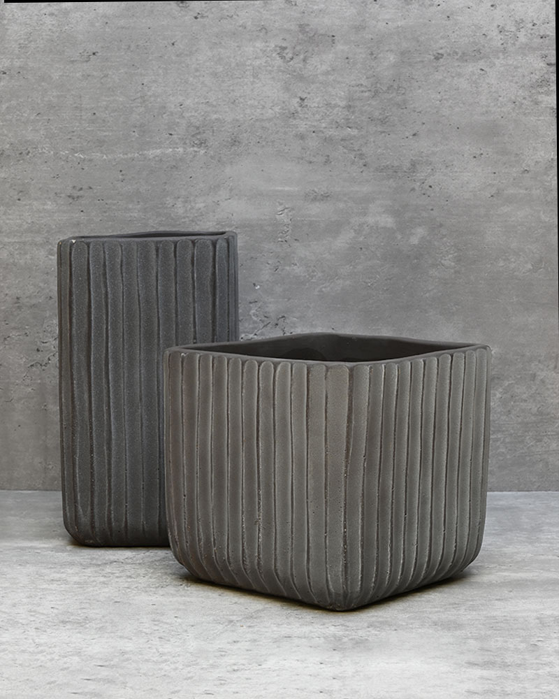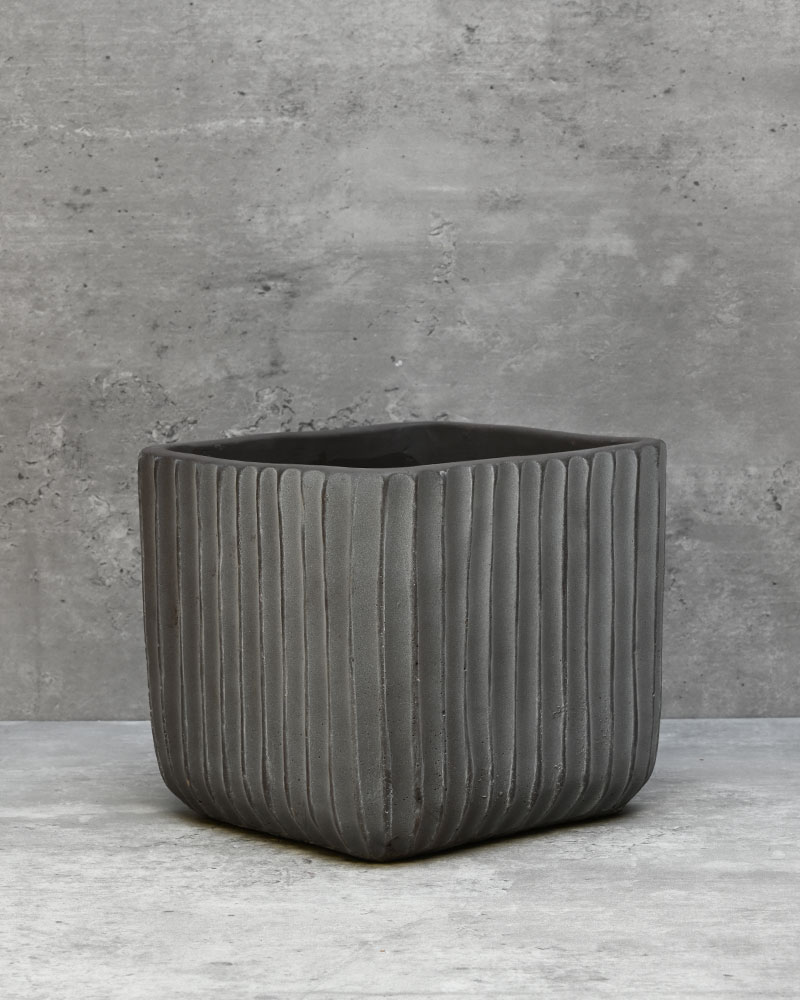 With a ridged texture and deep grey-mauve colour, this container makes any arrangement stand out. If you’re after a dark, lush look, this just might be your perfect pick.