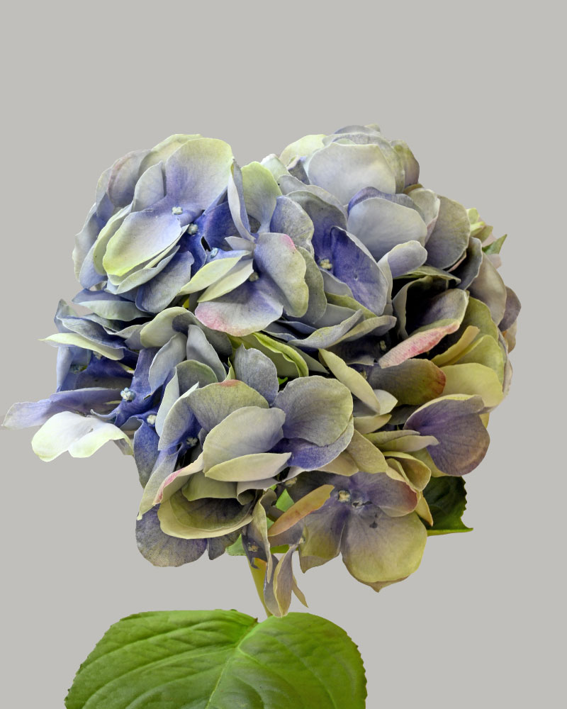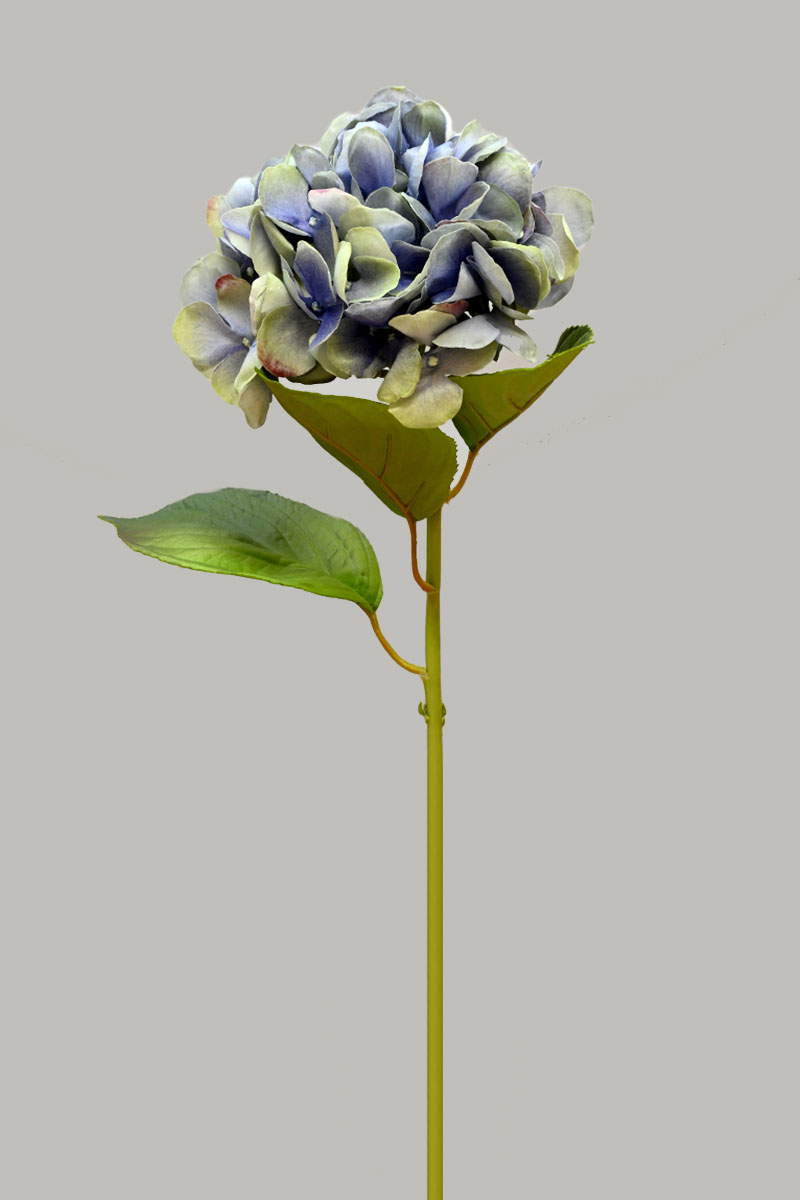 This artificial hydrangea stem showcases a large, lush bloom in soft blue and green shades, adding a gentle yet striking pop of colour. Crafted with a natural touch, it brings lifelike beauty and elegance to any floral arrangement. Ideal for use alone or paired with complementary flowers, it effortlessly enhances your décor with timeless charm.