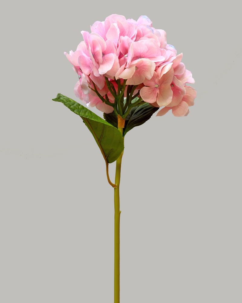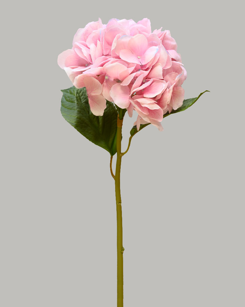 This artificial hydrangea stem showcases a large, lush bloom in soft pink and lavender shades, adding a gentle yet striking pop of colour. Crafted with a natural touch, it brings lifelike beauty and elegance to any floral arrangement. Ideal for use alone or paired with complementary flowers, it effortlessly enhances your décor with timeless charm.