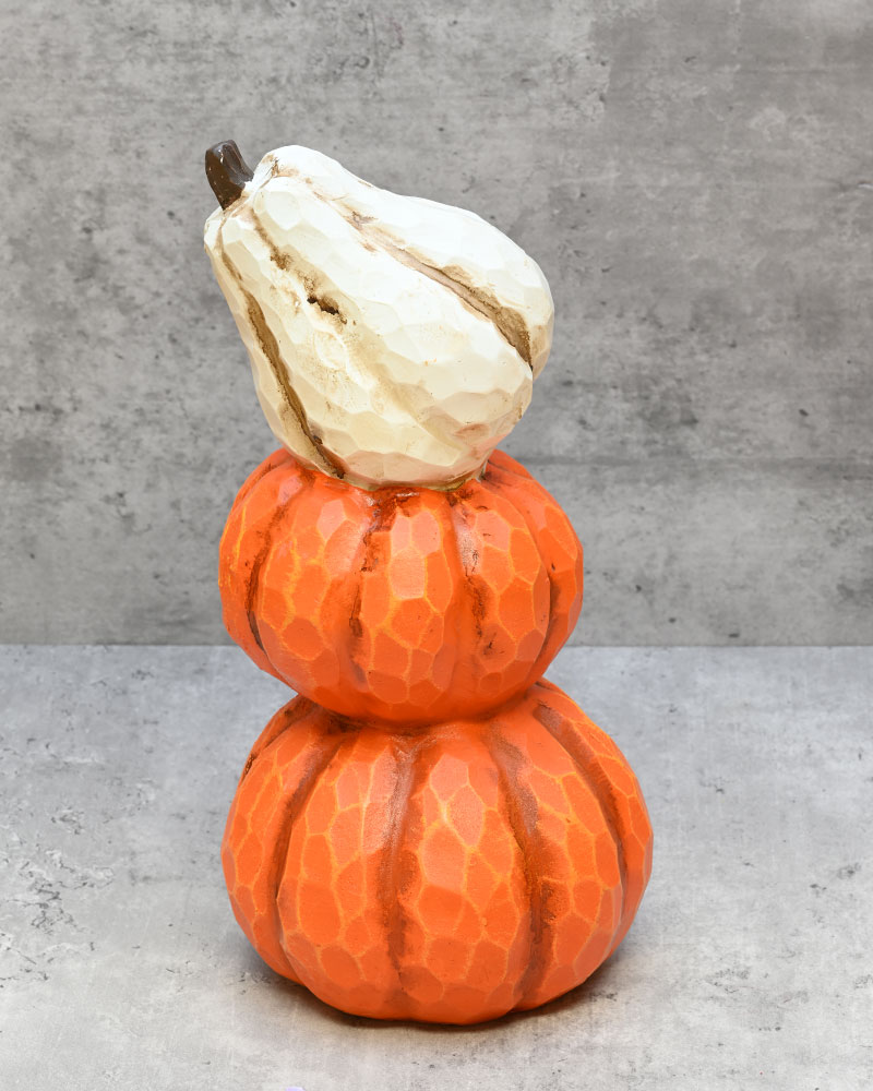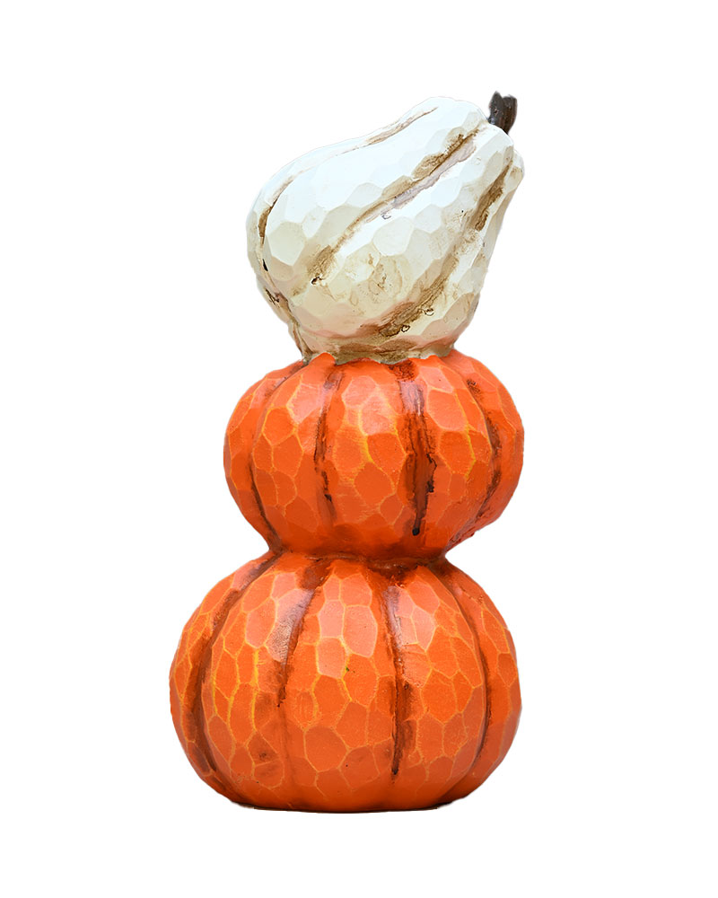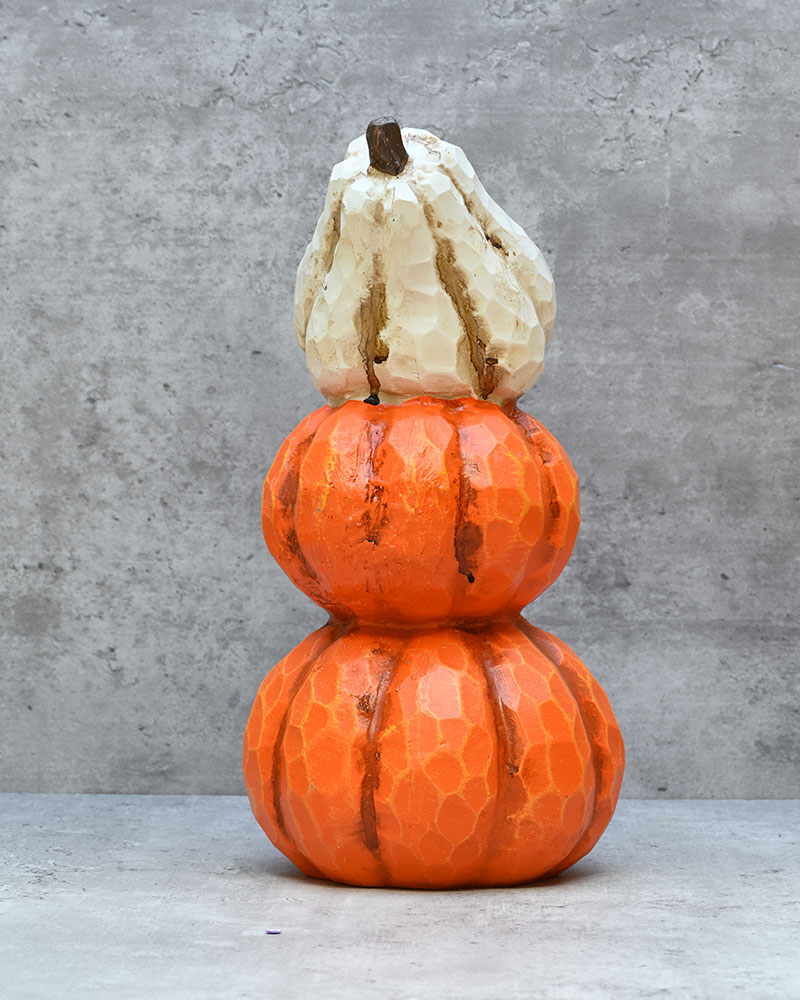 Celebrate the season with this charming set of three resin stacked pumpkins in classic orange and white hues. Perfect for adding a festive touch to your fall décor, these pumpkins create a delightful focal point on any tabletop, mantle, or entryway. Durable and lightweight, this stackable design brings cosy autumn vibes and timeless style to your home all season long.