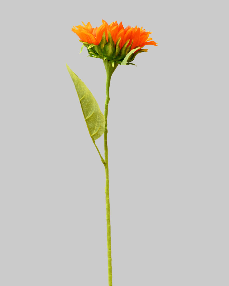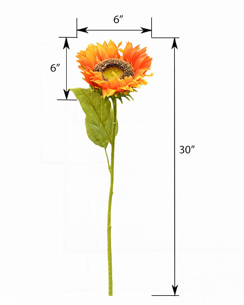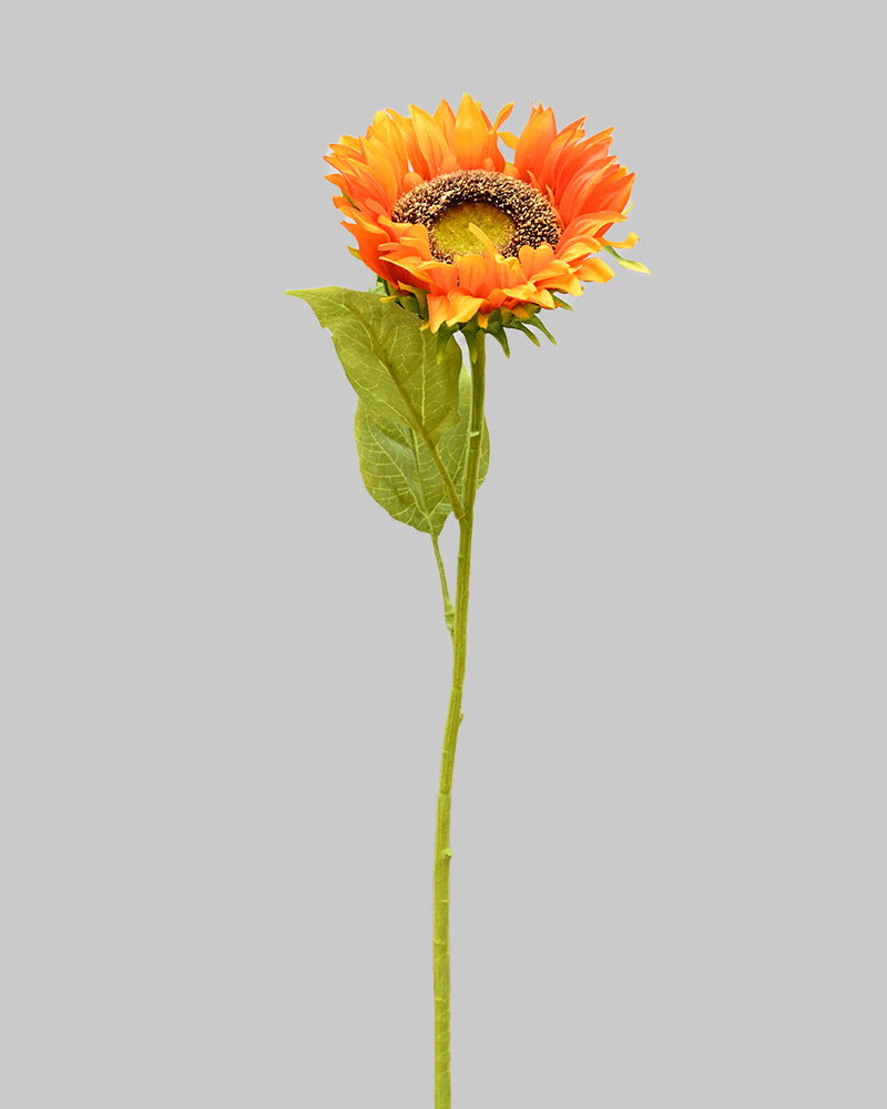 Sunflowers are stunning blooms loved not only by bees but by people as well. They evoke feelings of summer, warmth, and happiness. This particular stem features one large flower head, proudly displaying the classic vibrant orange and yellow hues. Perfect for brightening up any floral arrangement, these sunflowers bring the best of summer indoors. Let their natural beauty shine just as nature intended.