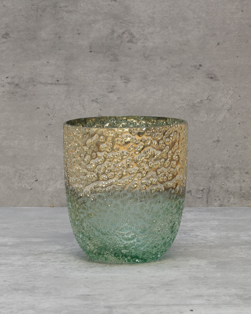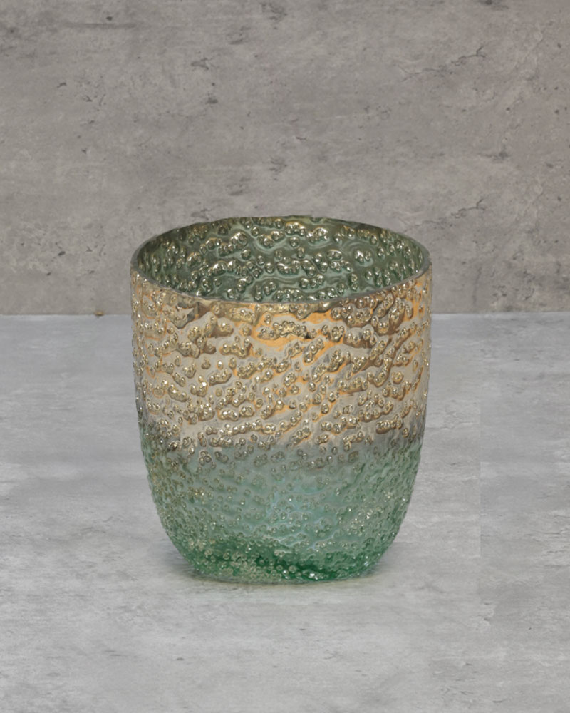 With a green metallic lustre and a heavily textured finish, this container delivers a bold, dramatic look. Whether displayed on its own, paired with other sizes from the same collection, or completed with a floral arrangement, it makes a striking statement in any space.