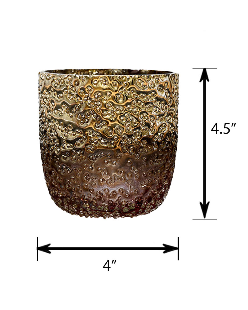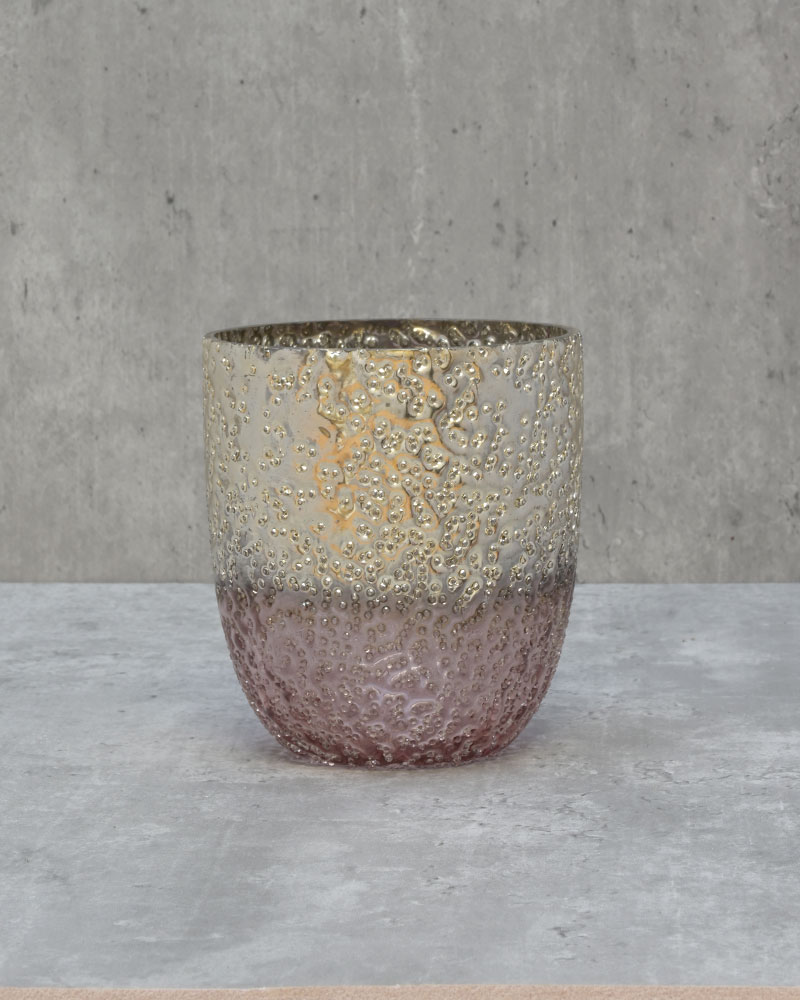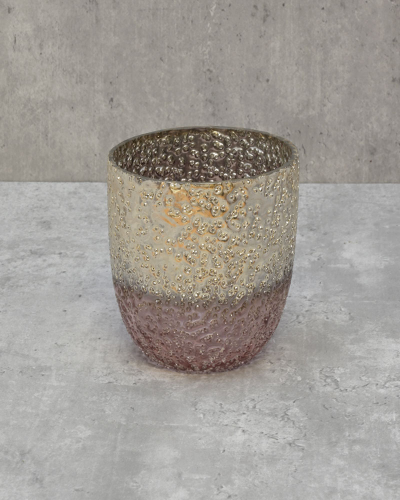 With a pink metallic lustre and a heavily textured finish, this container brings a bold and dramatic touch to any setting. Whether showcased on its own, paired with other sizes in the collection, or filled with a beautiful arrangement, it’s a statement piece that adds elegance and impact to your décor.