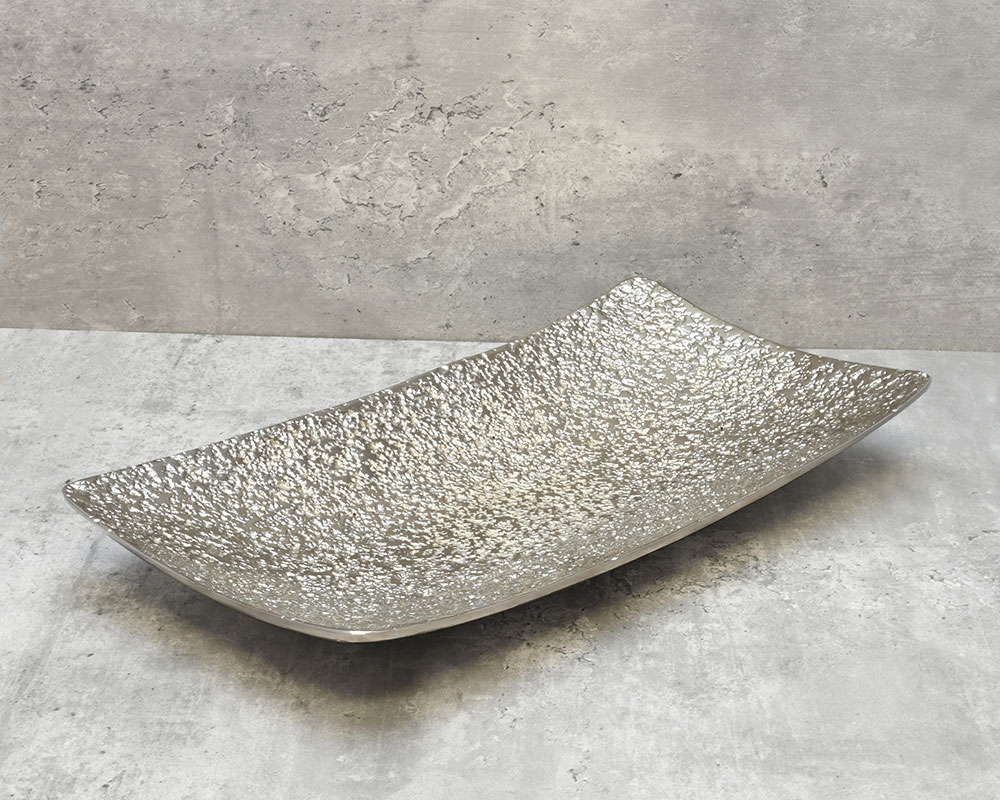 This decorative platter combines a timeless classic shape with an intricately detailed textured finish, making it a standout piece for any table setting. Its elegant design adds depth and visual interest, effortlessly elevating your décor. Perfect for displaying on its own as a striking accent or used as a base for other decorative items, this versatile platter brings both style and sophistication to any room.