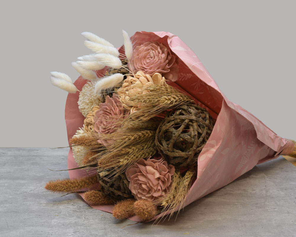 Timeless Romance is a soft and elegant dried floral bouquet inspired by classic beauty. Featuring blush and ivory preserved blooms, natural woven elements, and warm textural accents, this hand-wrapped arrangement offers a gentle, romantic feel. Designed to last, it’s a beautiful way to celebrate love, meaningful moments, or simply add lasting charm to any space.